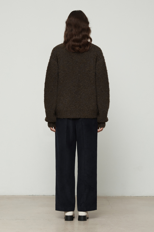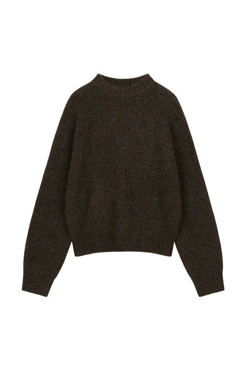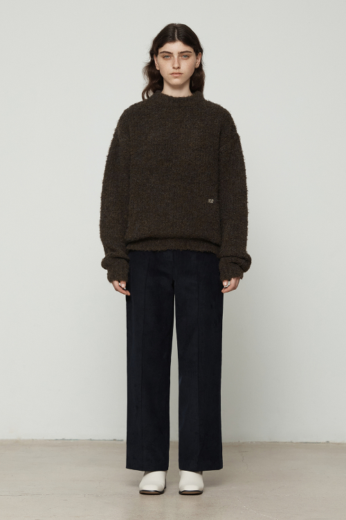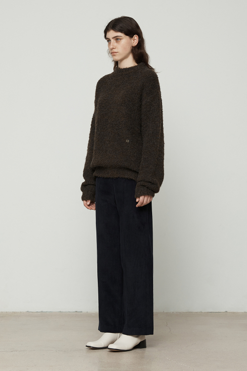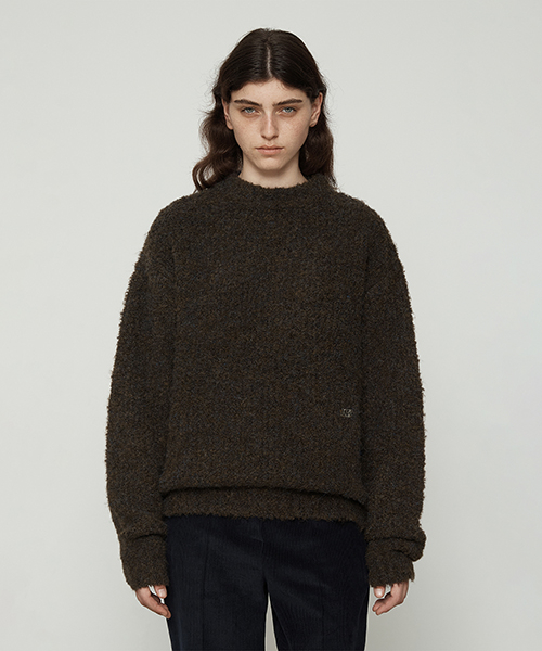 부클 믹스 크루넥 니트탑 [브라운]