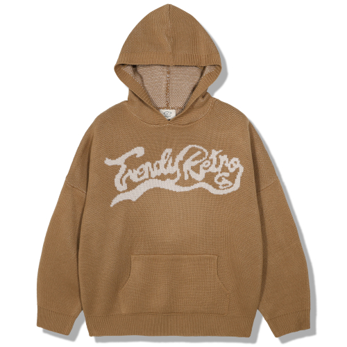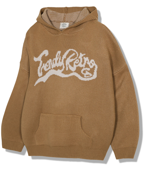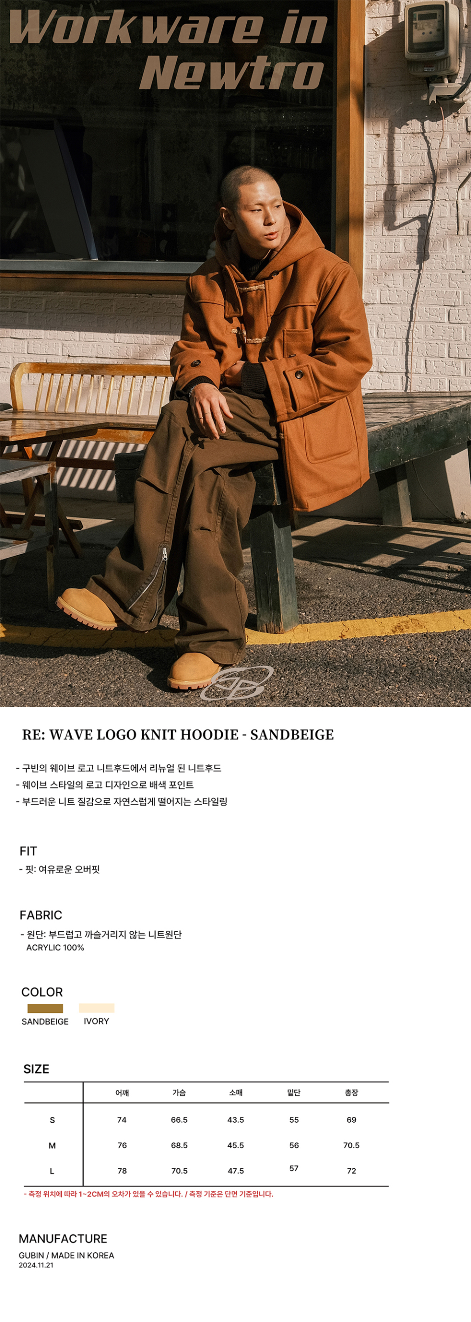 RE : 웨이브 로고 니트 후드 - 샌드베이지