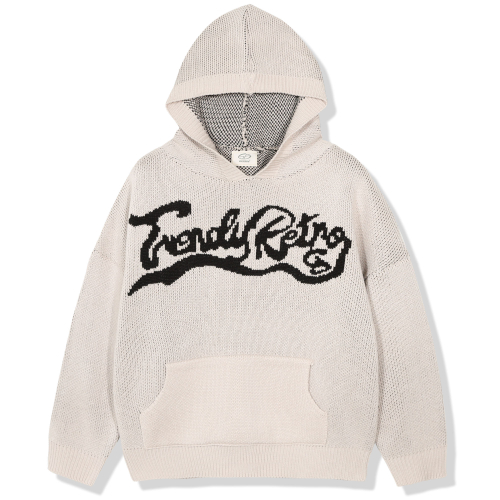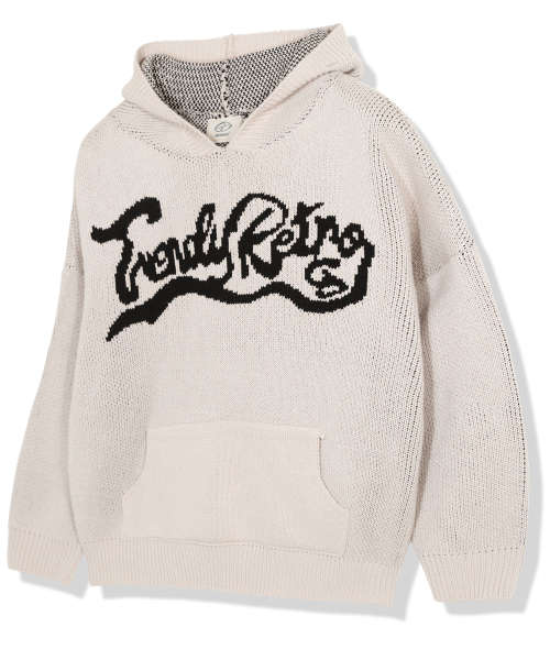 RE : 웨이브 로고 니트 후드 - 아이보리