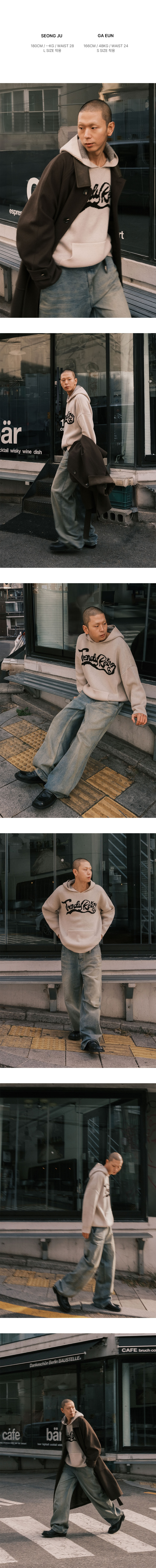 RE : 웨이브 로고 니트 후드 - 샌드베이지