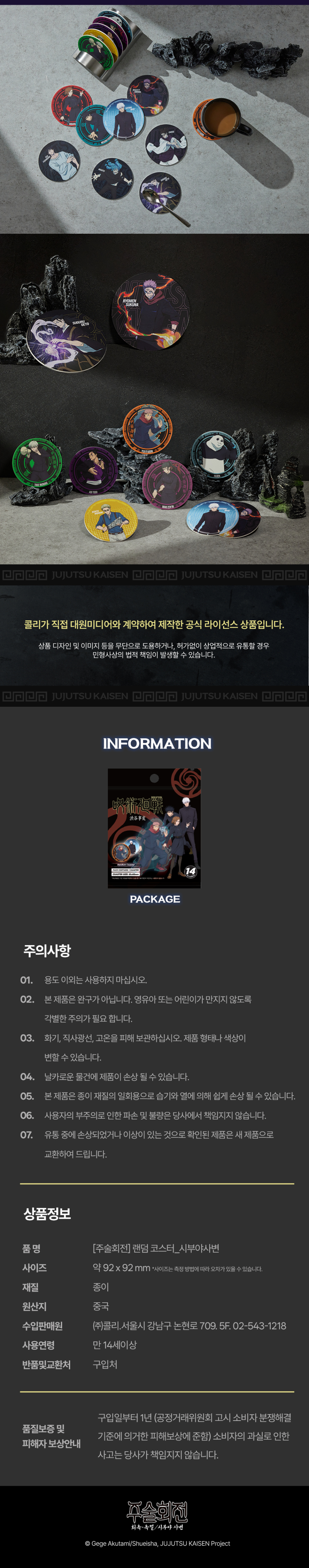 주술회전 랜덤 코스터 * 3개 세트 - 시부야사변
