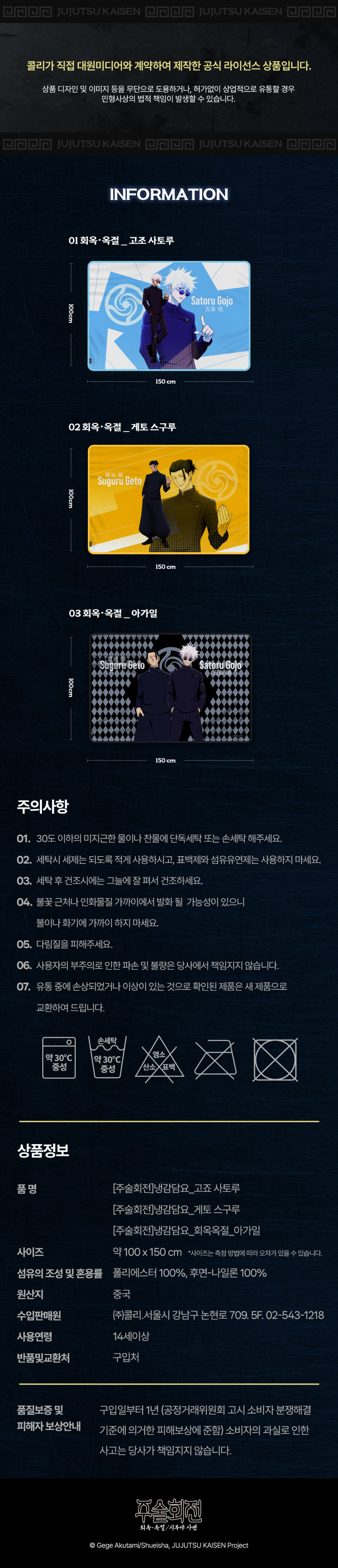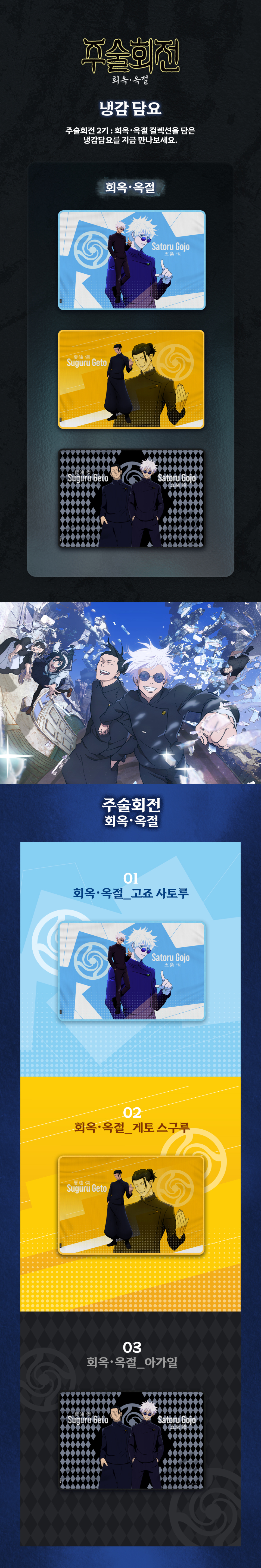 주술회전 캐릭터 냉감담요 3종