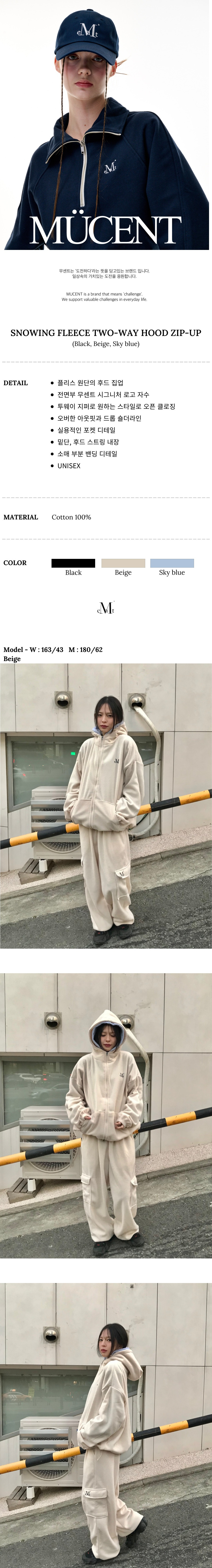 스노잉 후리스 투웨이 후드 집업 남녀공용 (3컬러)