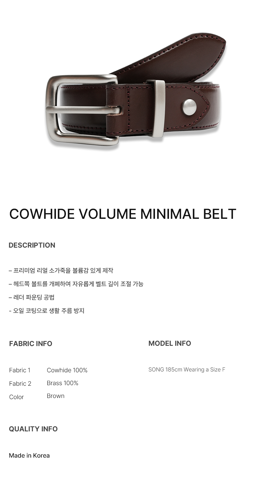 카우하이드 볼륨 미니멀 벨트 BROWN