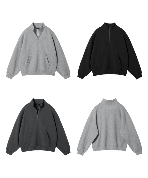 ( 2Pack ) 오버핏 절개라인 스웨트 하프집업 ( 3Color )