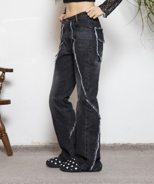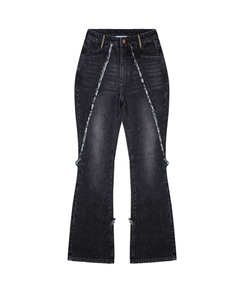 WXP019 컷오프 인시전 부츠컷 데님 팬츠 (BLACK)