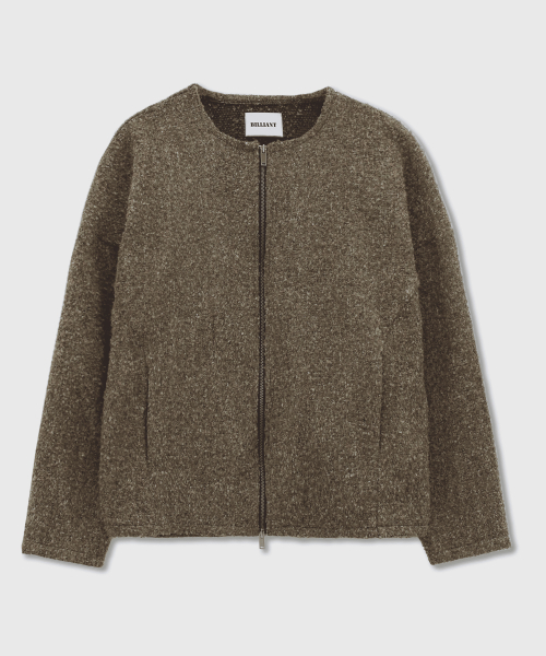자가드 울 가디건_카키