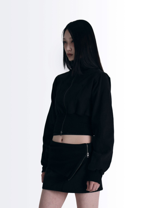 코튼 소재의 리브드 크롭 점퍼입니다.