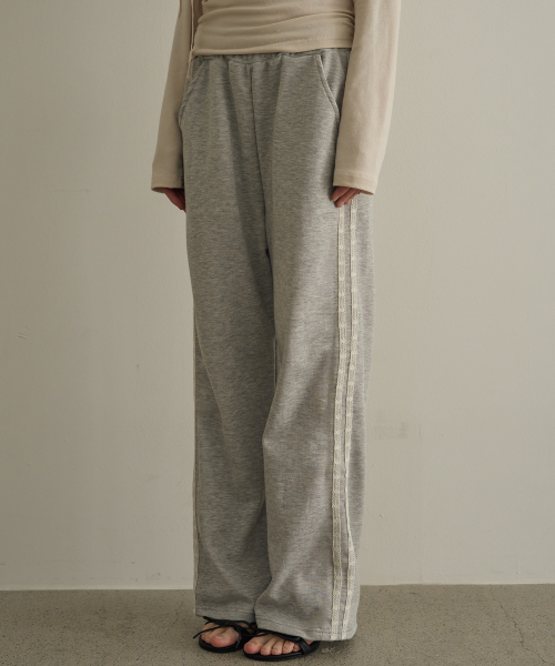레이스 와이드 스웻팬츠(멜란지 그레이)