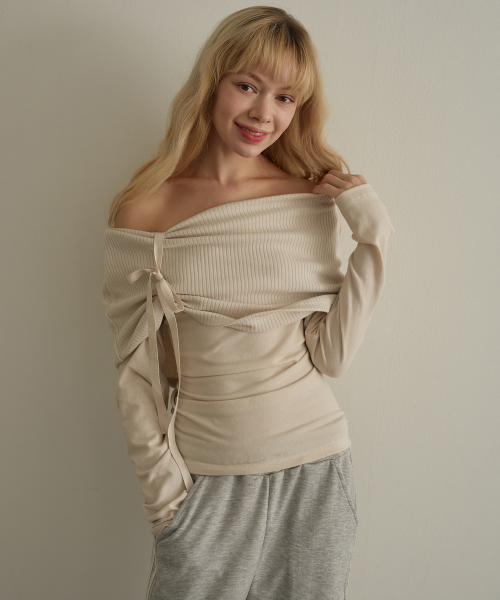 블러 레터링 루즈핏 롱슬리브 (아이보리)