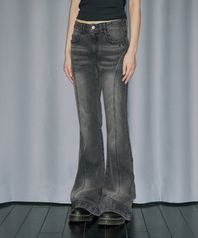 커브 절개 부츠컷 데님 팬츠 - BLACK