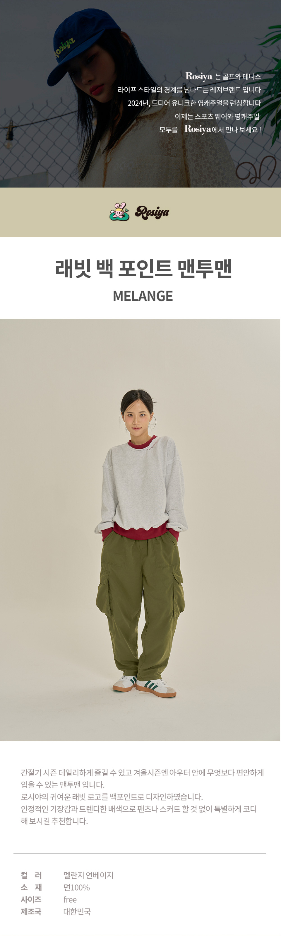 래빗 백 포인트 맨투맨/멜란지