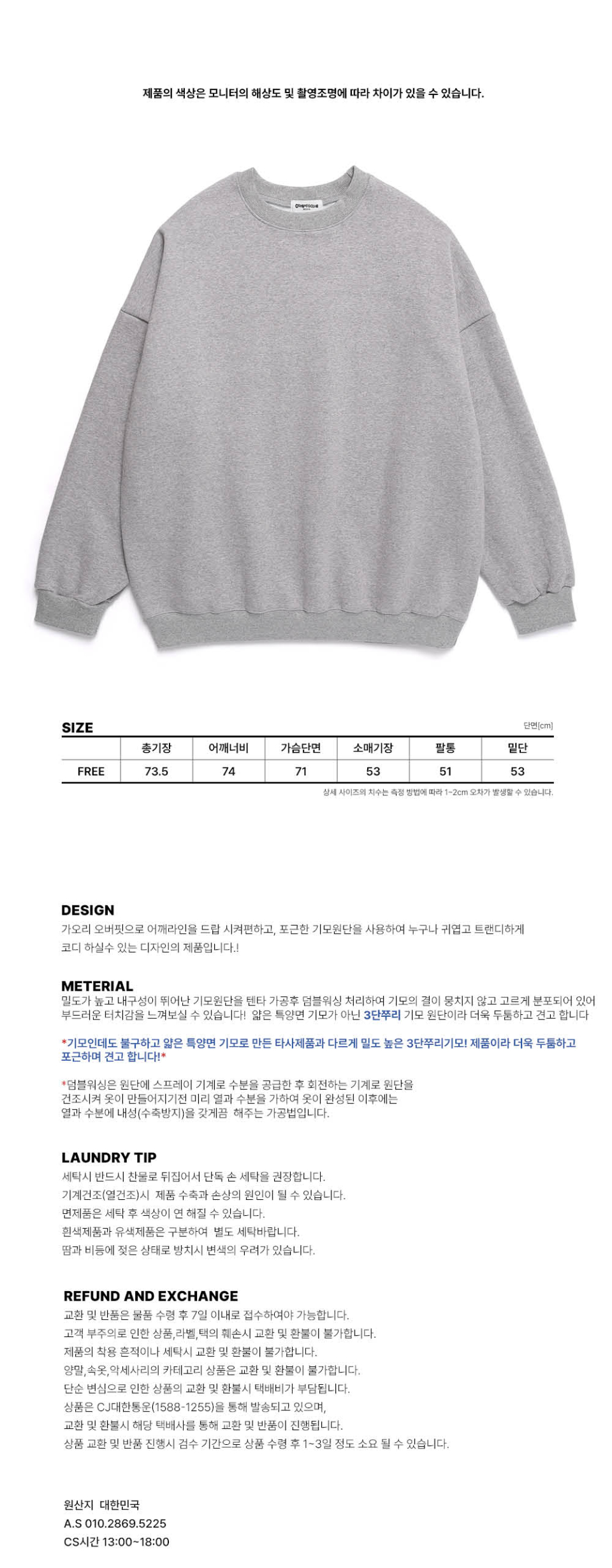 니켈 반집업 오버핏 무지 맨투맨 MAR619 (6 COLOR)