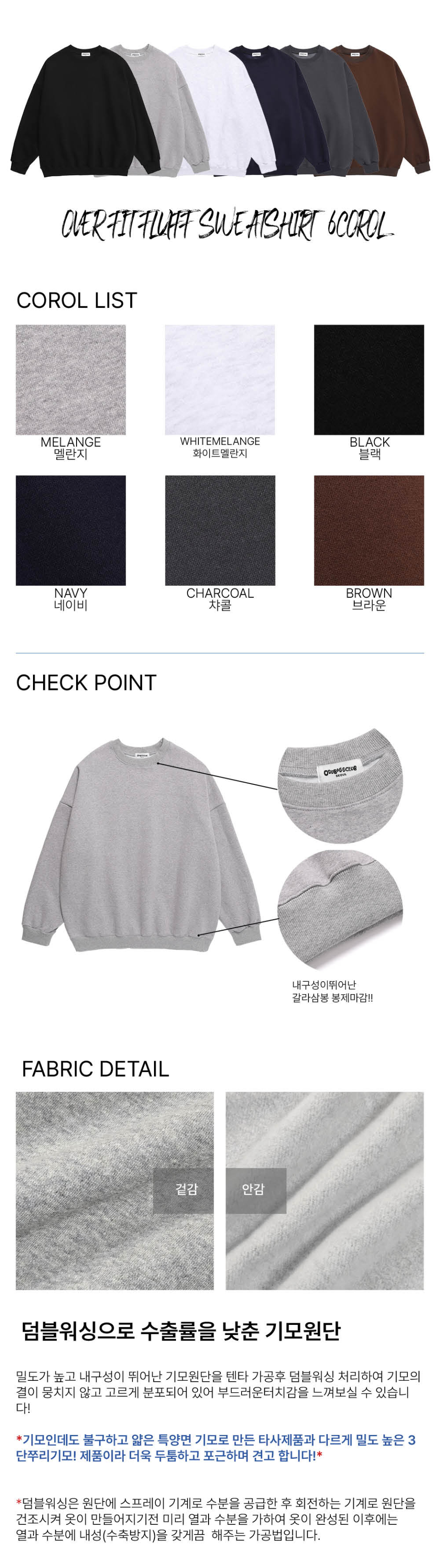 오드볼 오버핏 무지 기모 스웻셔츠 6컬러