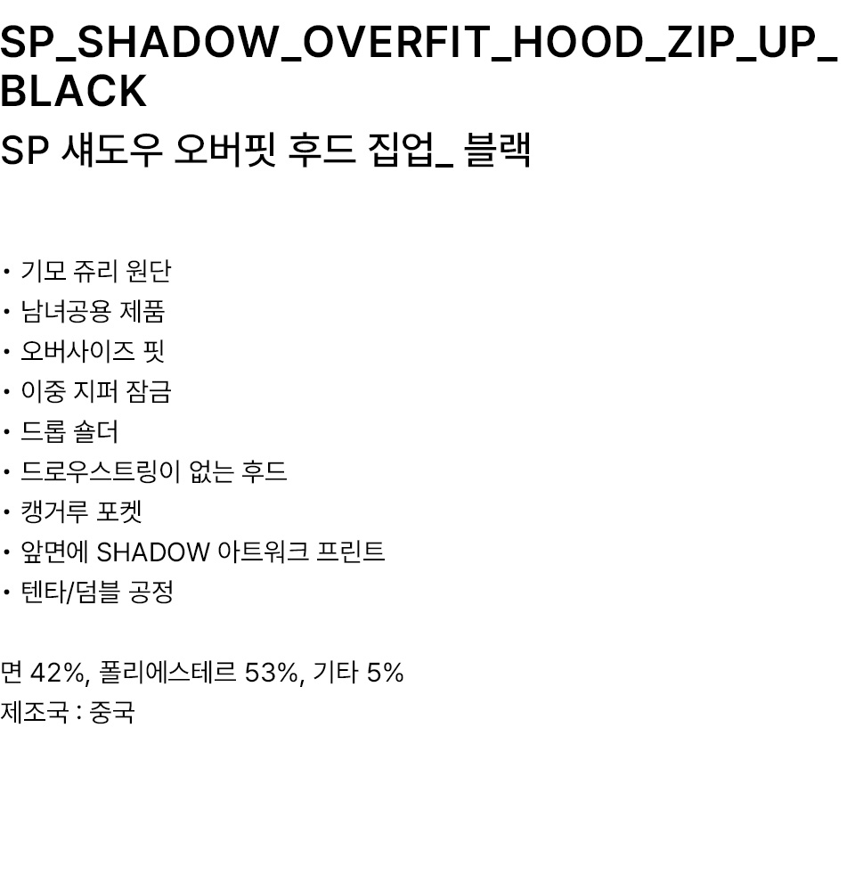 SP 섀도우 오버핏 후드 집업 블랙
