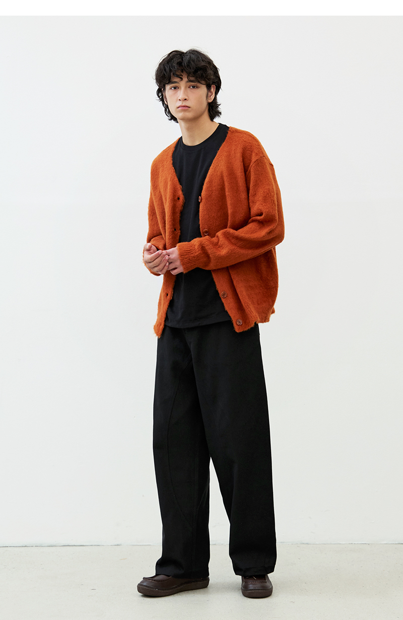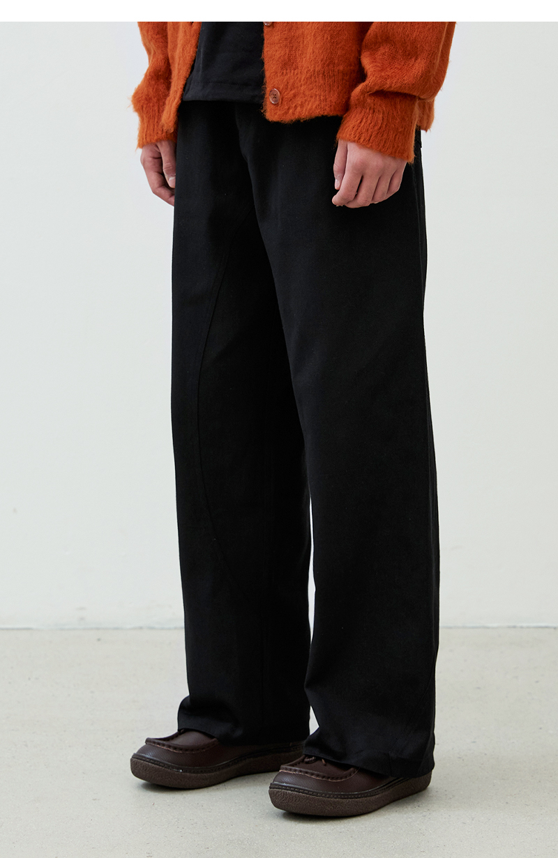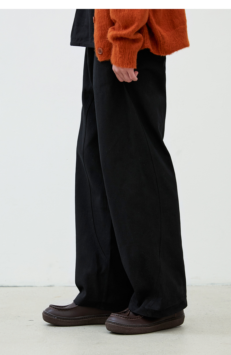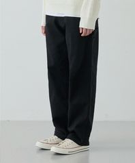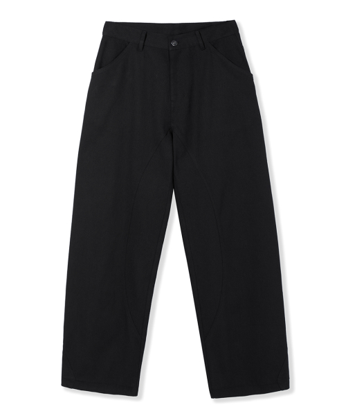 ADN 와이드 커브드 절개 데일리 코튼 팬츠 면바지 [블랙]