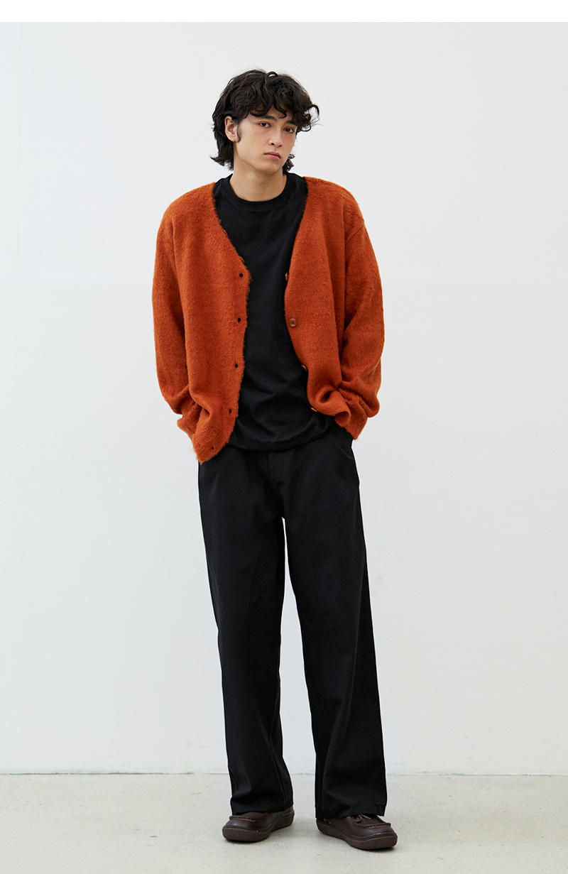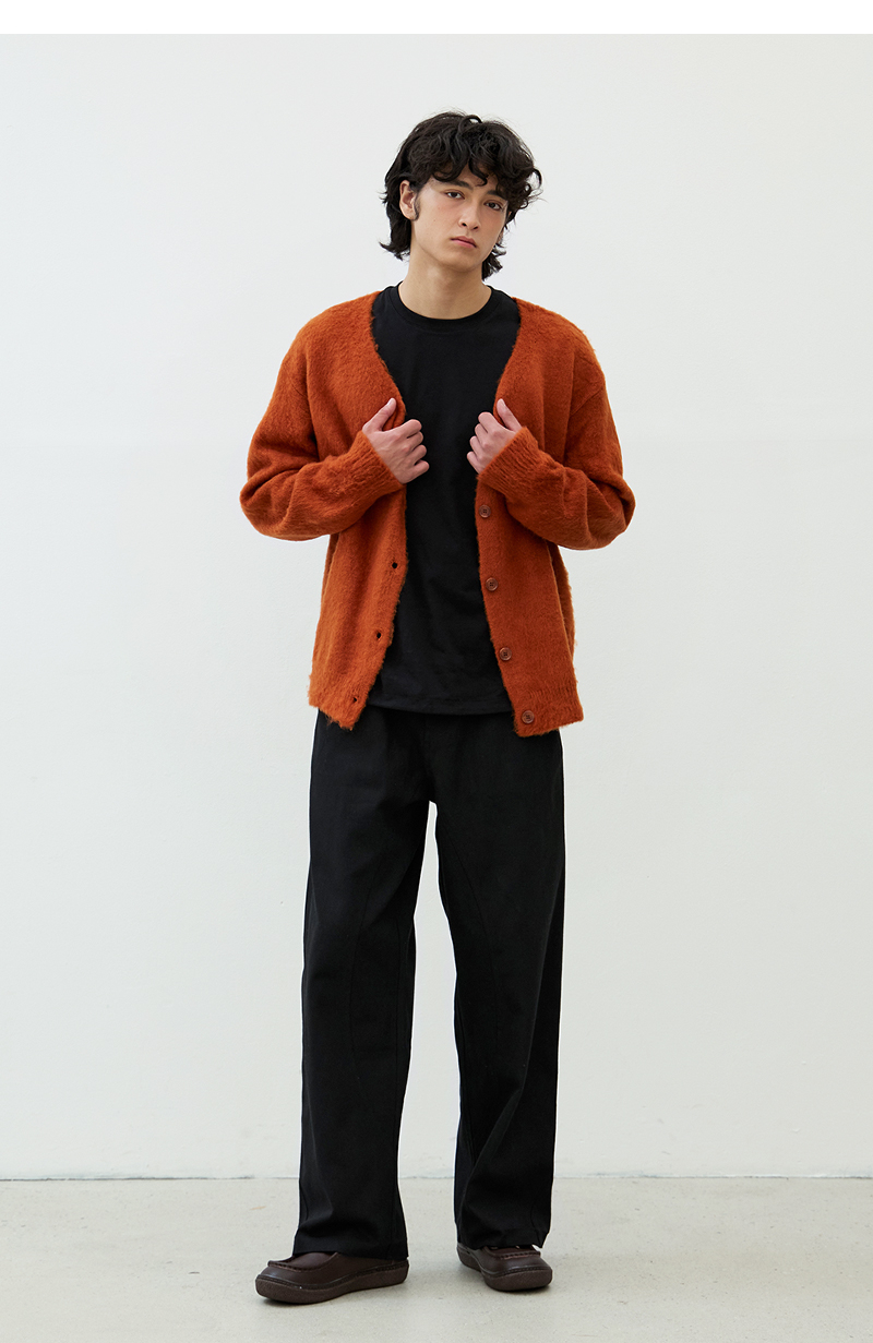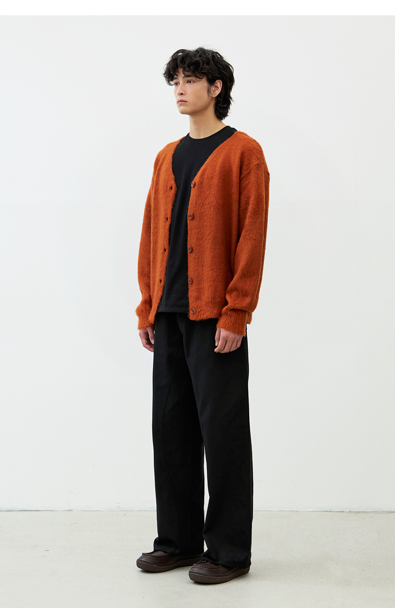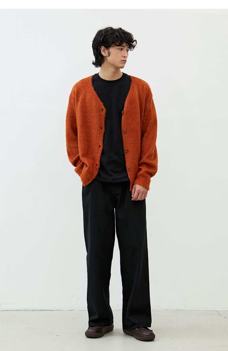 ADN 와이드 커브드 절개 데일리 코튼 팬츠 면바지 [브라운]