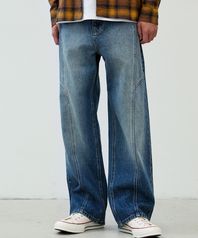 [WITH 유호진] ADN 데일리 세미 와이드 절개 워싱 데님 청바지 [블루]