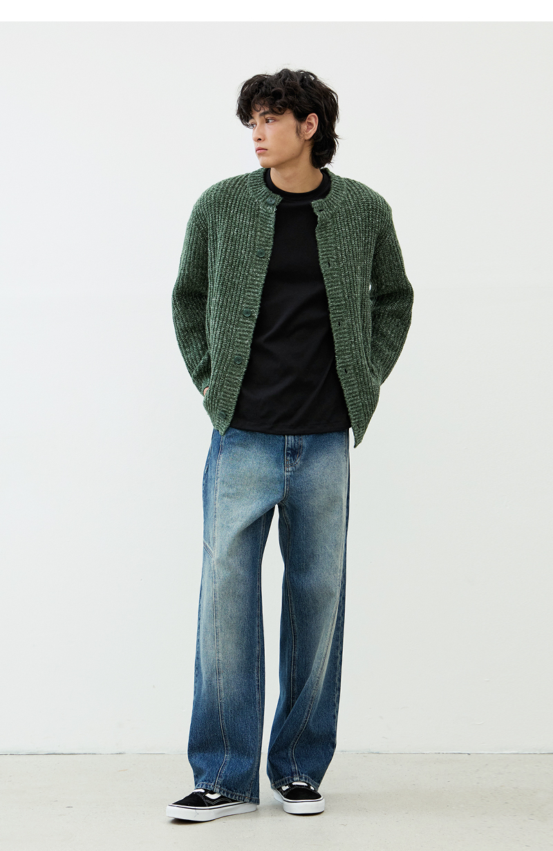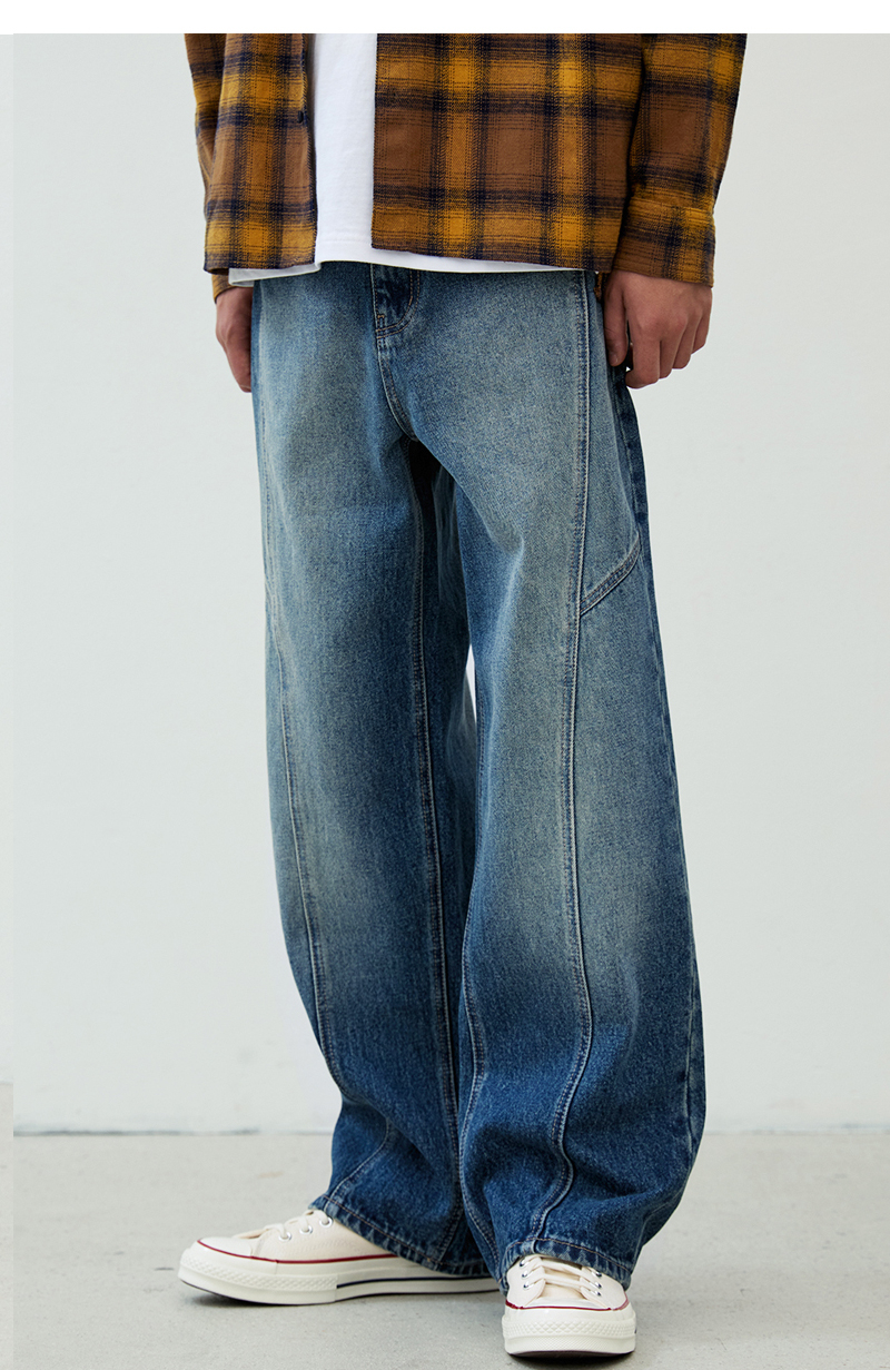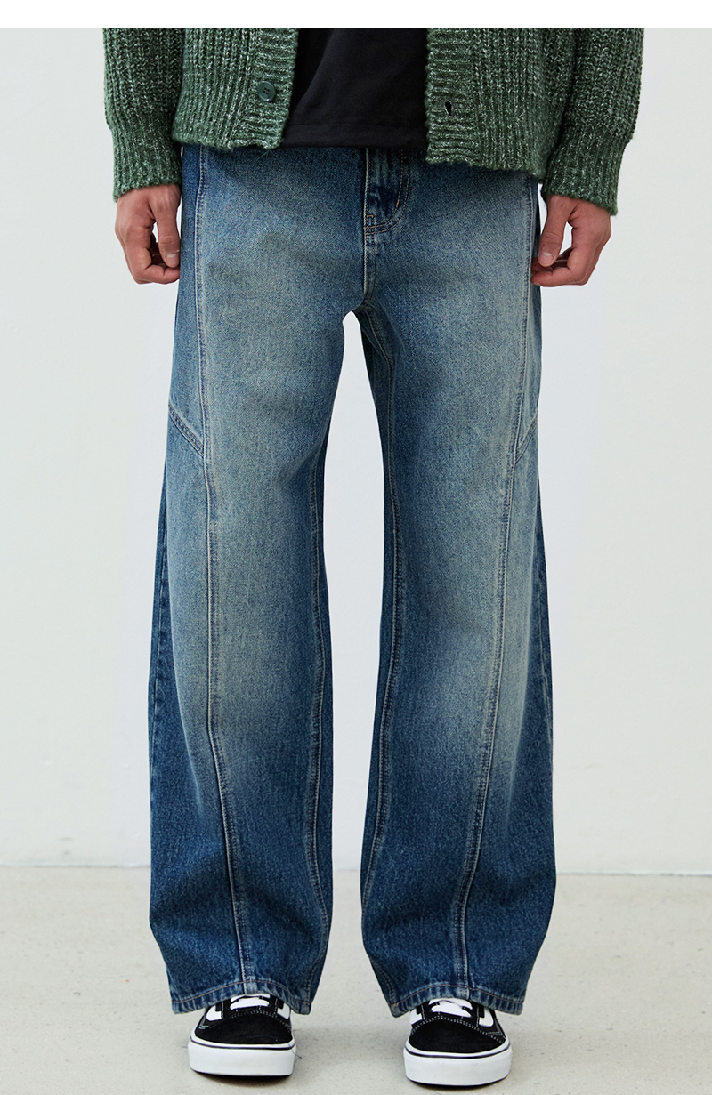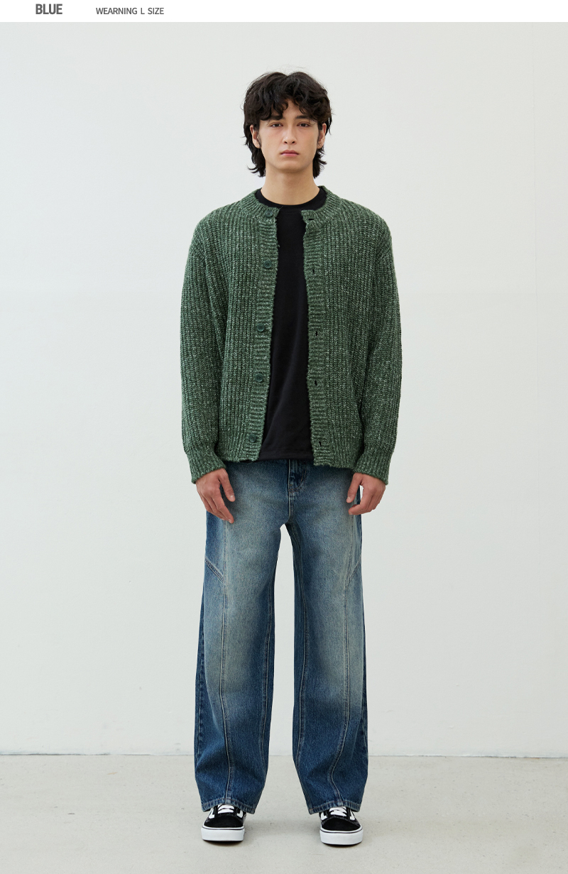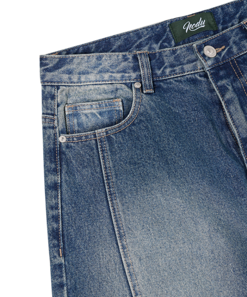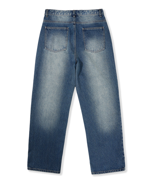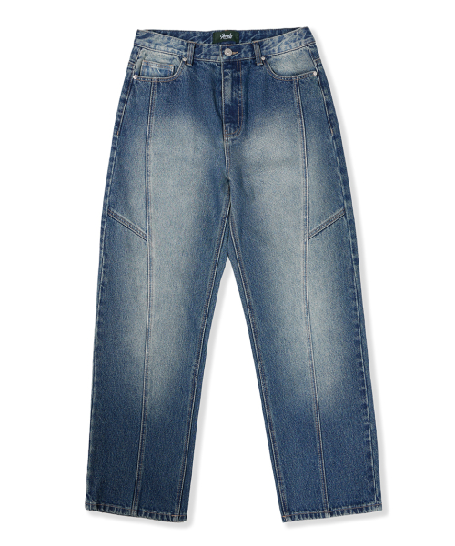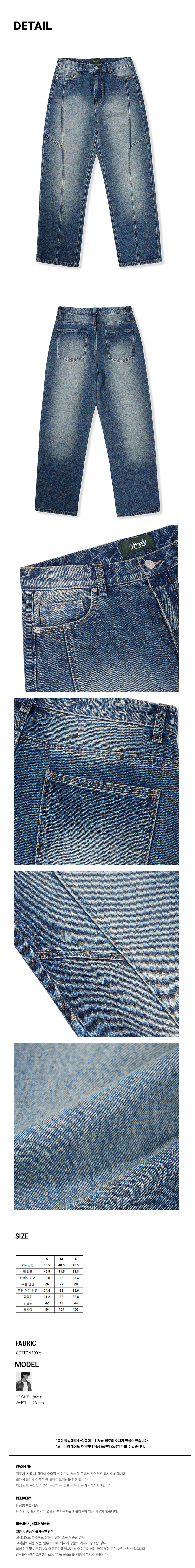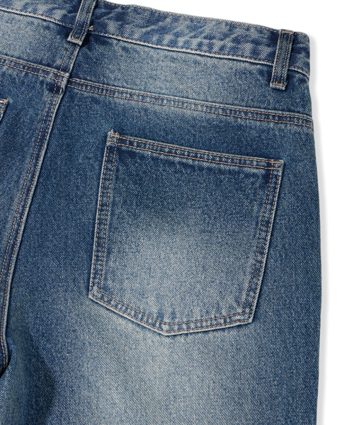 ADN 데일리 세미 와이드 절개 워싱 데님 청바지 [블루]