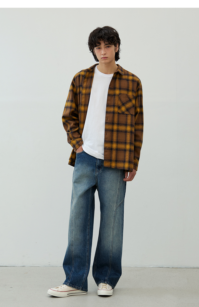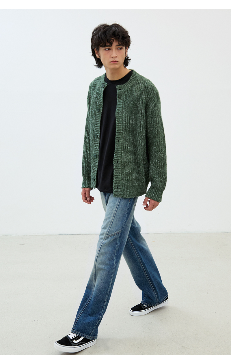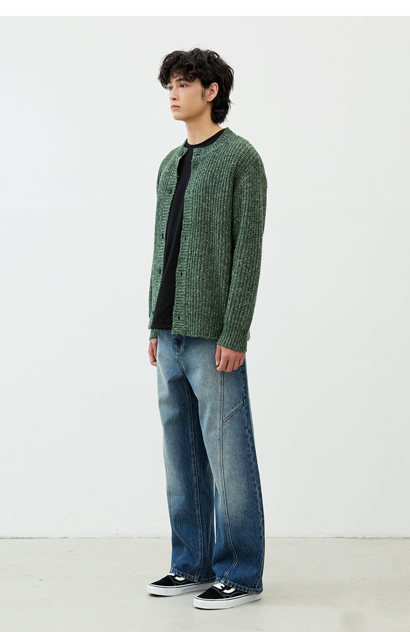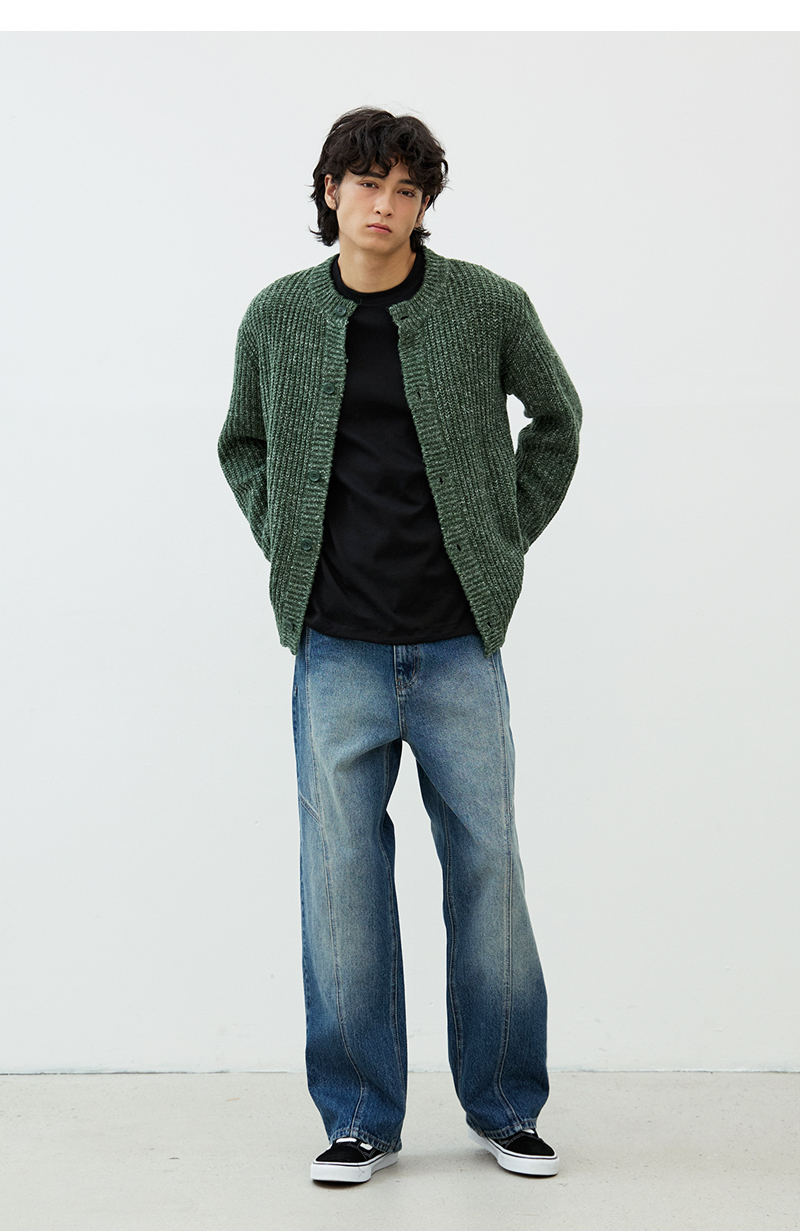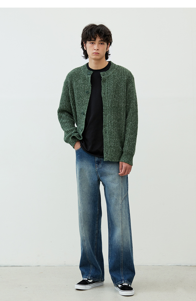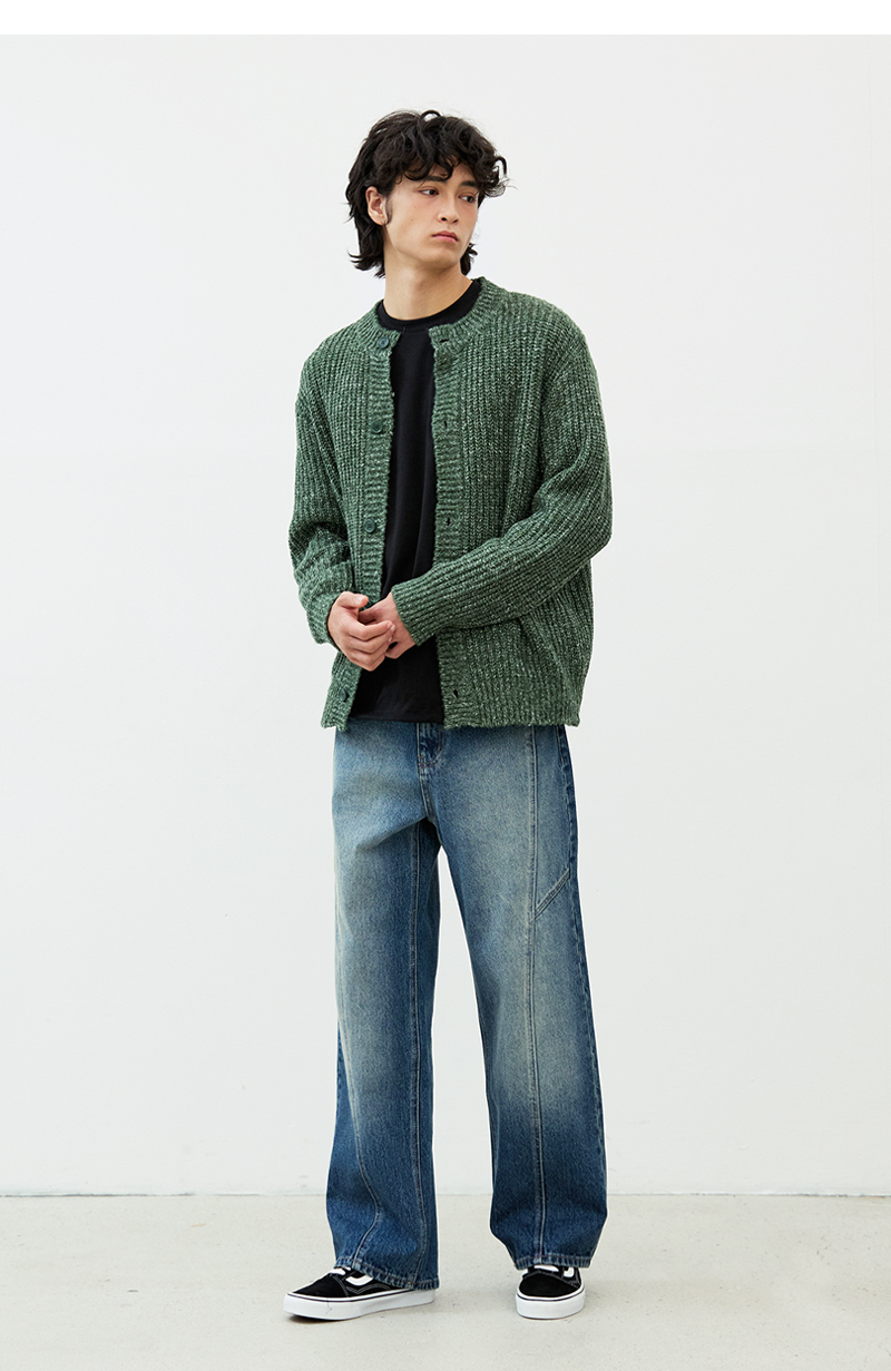 ADN 데일리 세미 와이드 절개 워싱 데님 청바지 [블루]