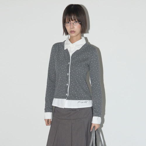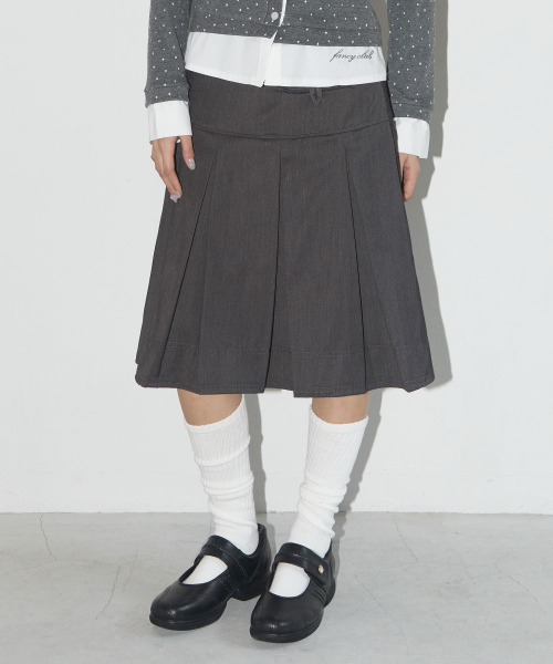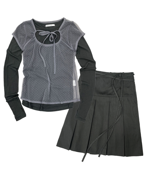 [SET] 3-WAY 도트 레이어드 롱슬리브 & 포멀 버튼 플리츠 미디 스커트_F24ZB071xZD871