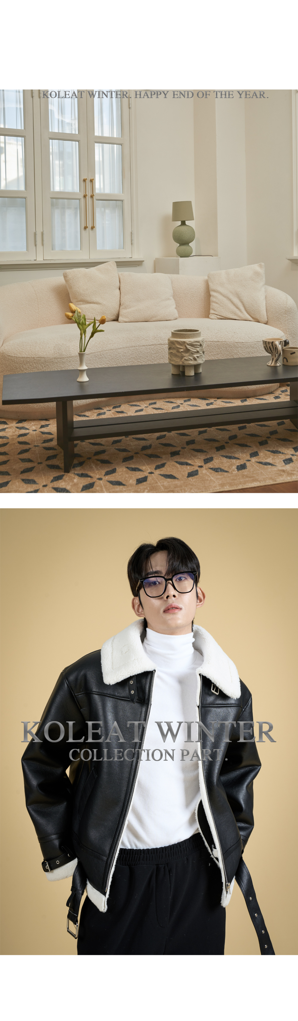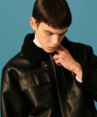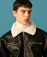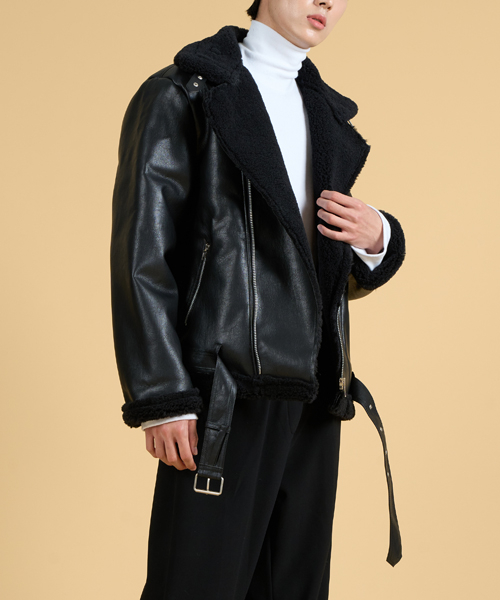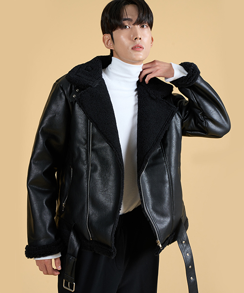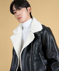 MEN 오버핏 덤블 싱글 지퍼 가죽 플리스 무스탕 자켓 [Black_white] 점퍼 ver.