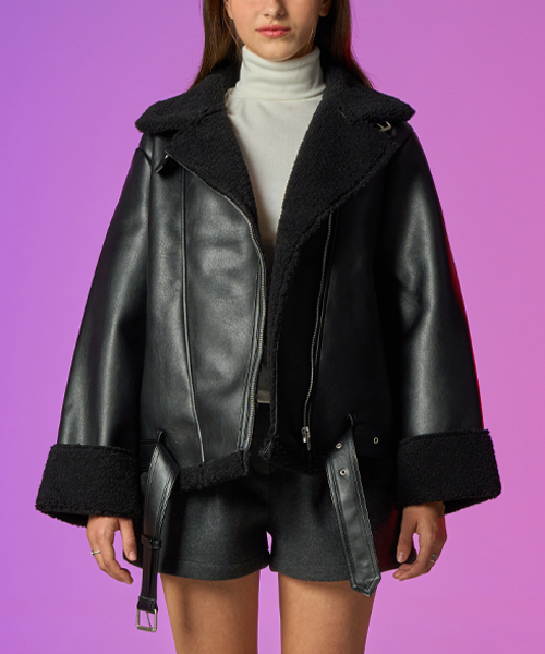 (남녀공용) 벨트탈부착 오버핏 무스탕 자켓 [All_Black]