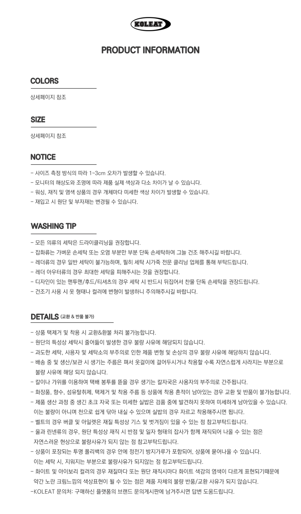 콜릿(KOLEAT)은 브랜드만의 핏과 디테일을 담은 트렌디하고 시크한 데일리 룩을 선보이는 브랜드입니다. 오래 입을 수 있는 기본 아이템을 특별한 디테일에 집중하여 유행에 맞는 스타일리시한 패션 웨어를 선보입니다.