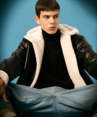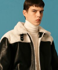 MEN 오버핏 덤블 시어링 배색 가죽 무스탕 자켓 [Black_white] 투톤 비건 양털ver.