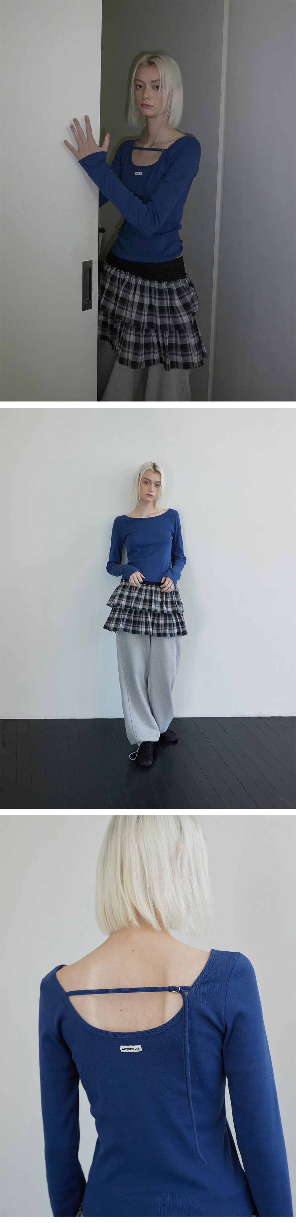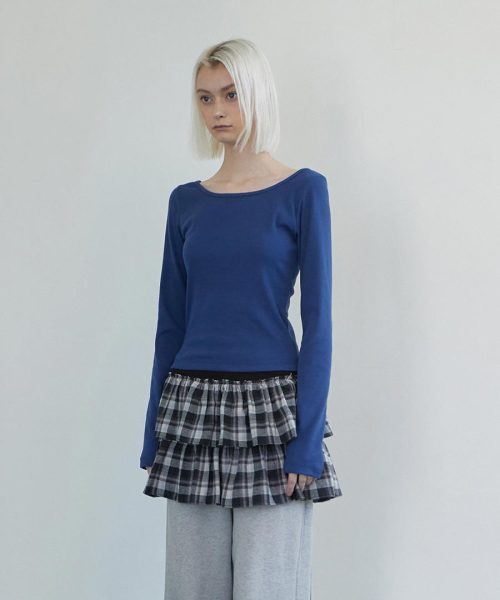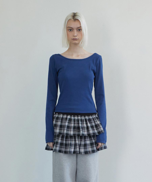Back Point Boat Neck Sleeve Navy
