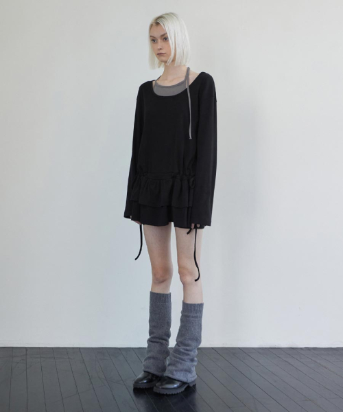 버튼업 단가라 레이어드 슬림 핏 롱슬리브 올데이 가디건 티셔츠 [블랙]
