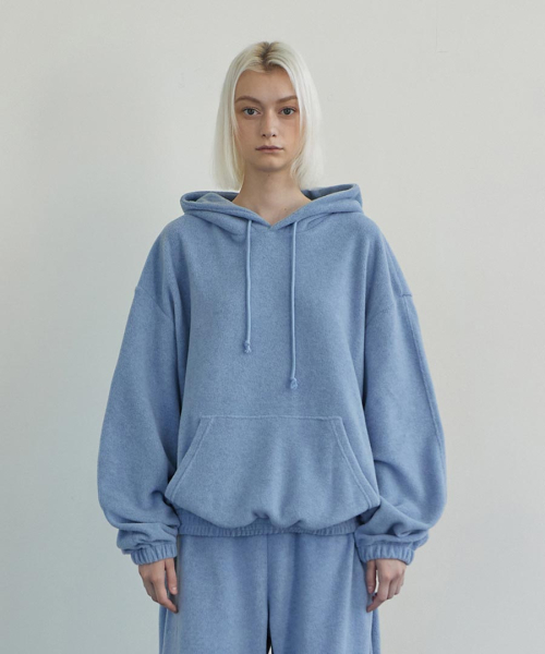 Melange Fleece Pullover Hoodie Gray Blue