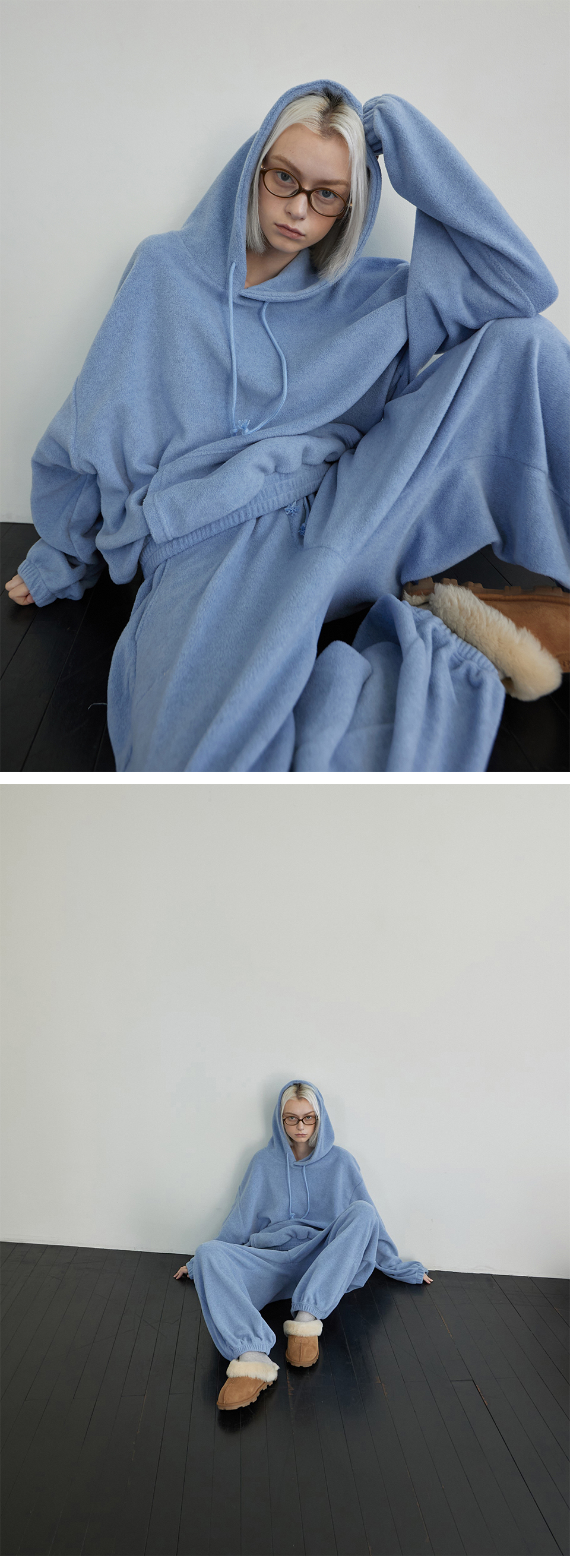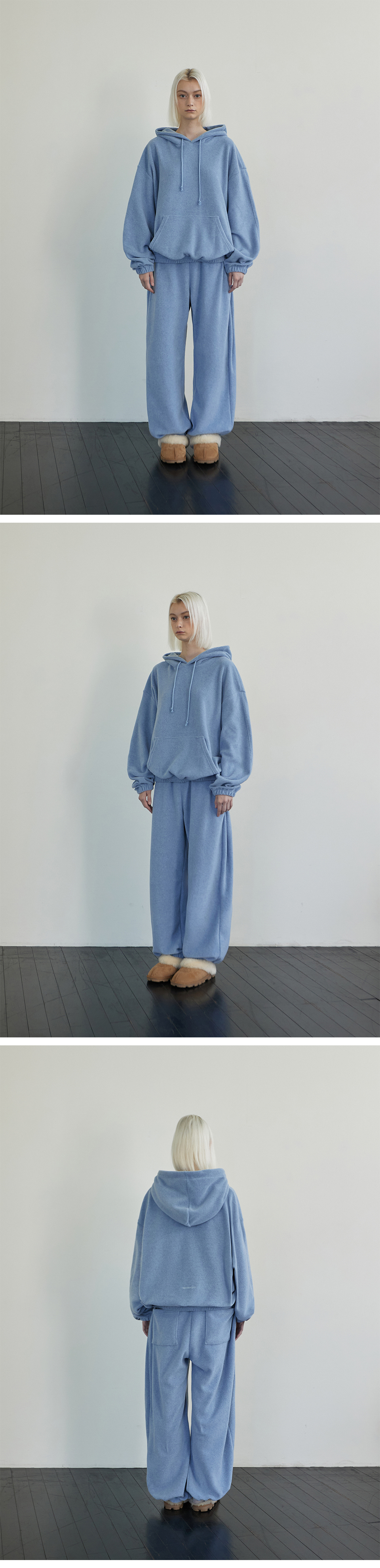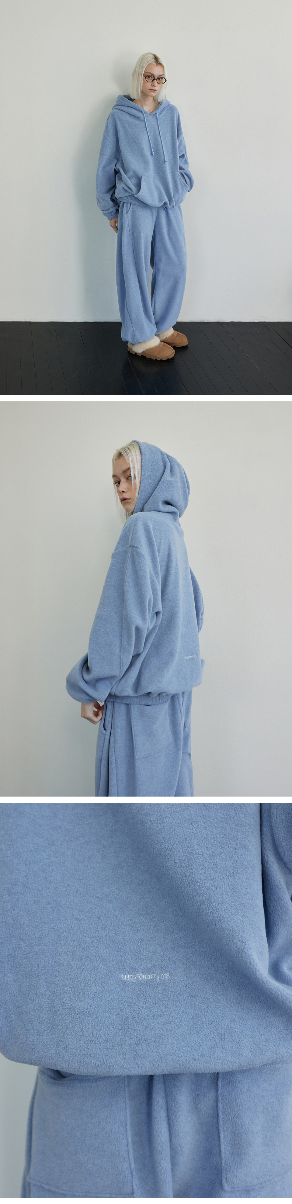 Melange Fleece Pintuck Pants Gray Blue