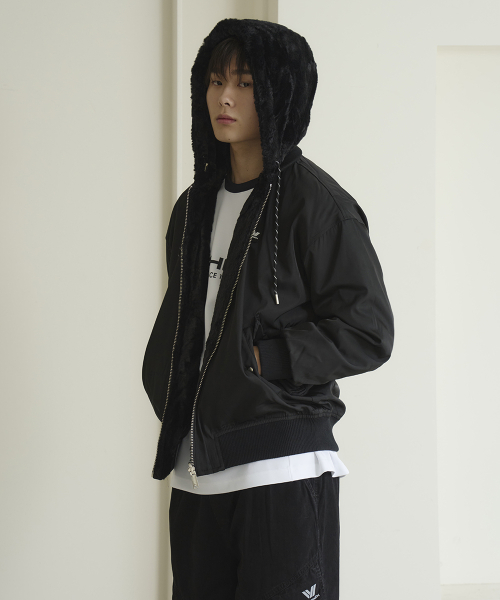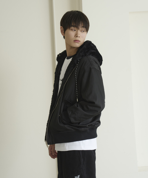 리버시블 퍼 후드 점퍼 [블랙]