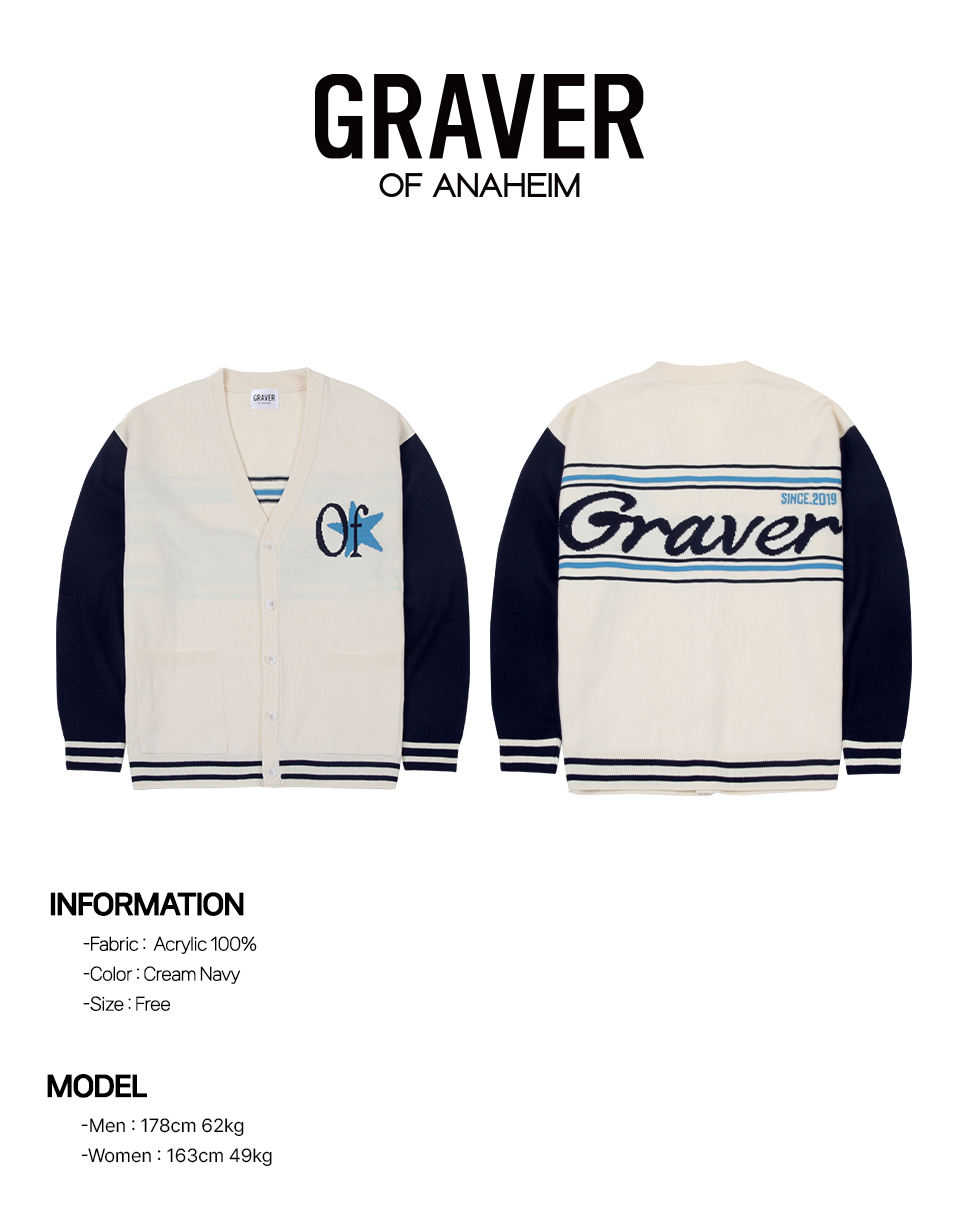 [UNISEX]GRAVER OF 니트 가디건_크림/네이비