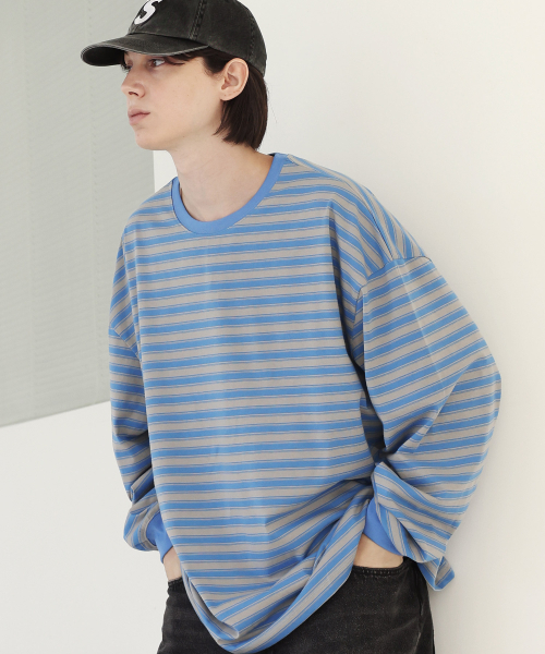 시티 오버사이즈 스트라이프 티셔츠 [라이트블루]