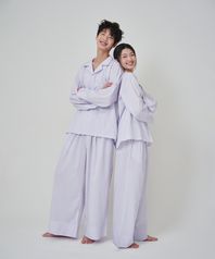 (uni)도미토리 펜슬 스트라이프 파자마 퍼플