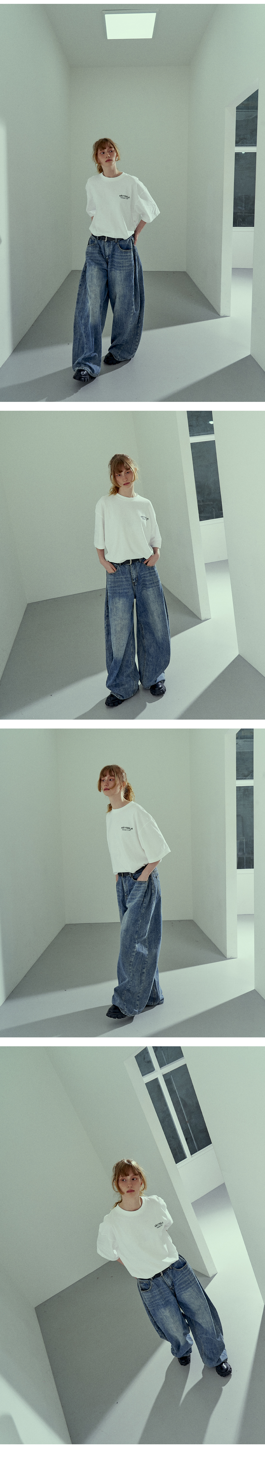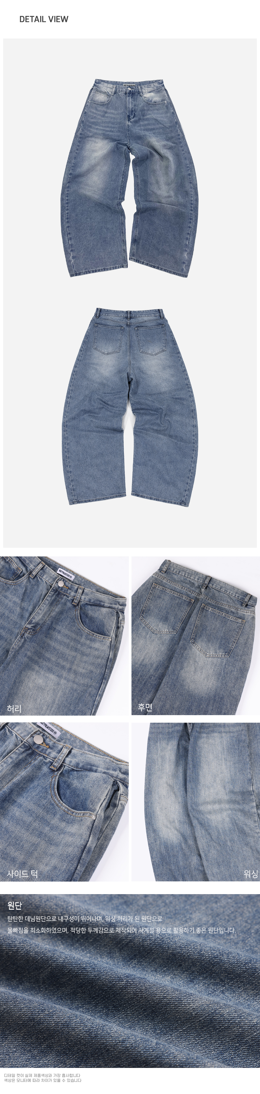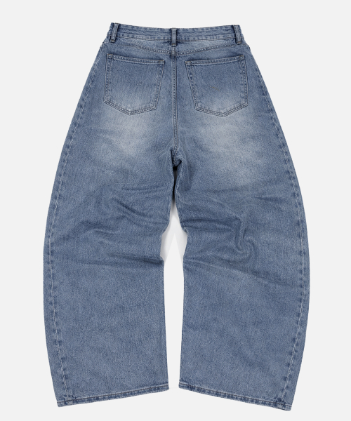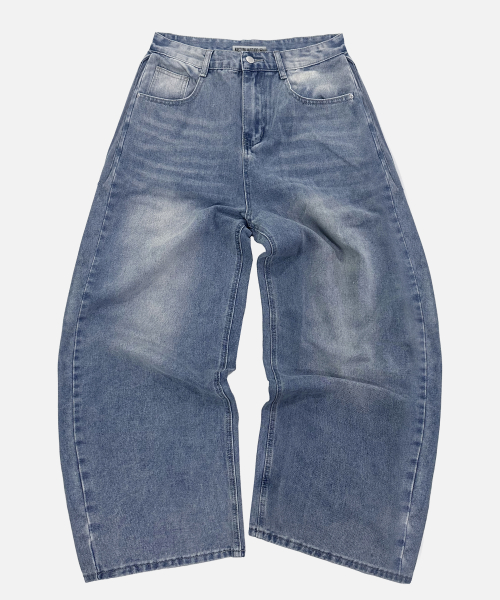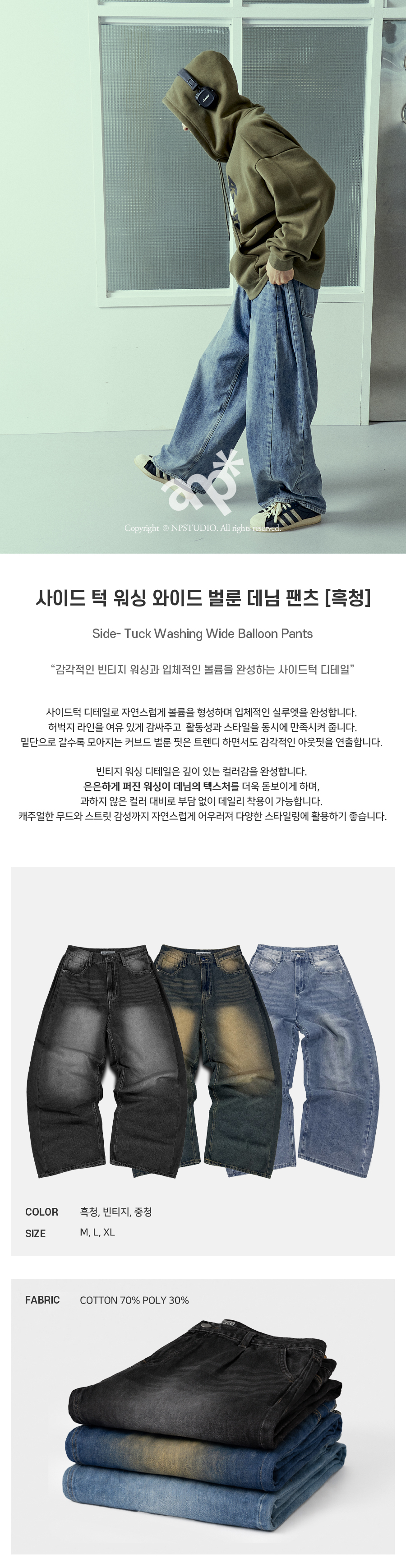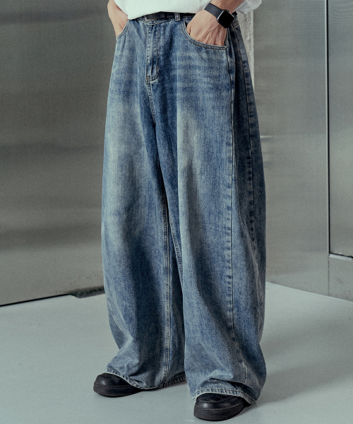사이드 턱 워싱 와이드 벌룬 팬츠 중청