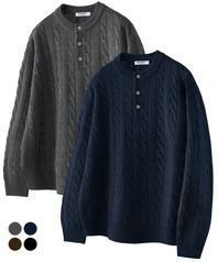 오버핏 케이블 헨리넥 라운드 니트 4Color