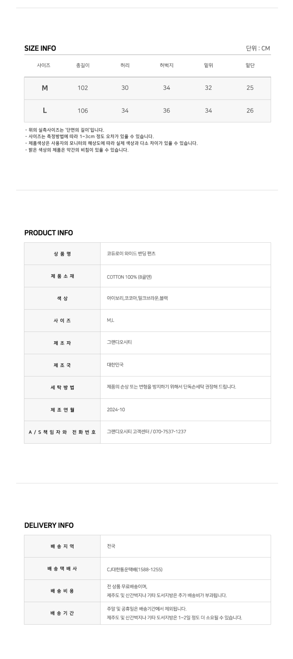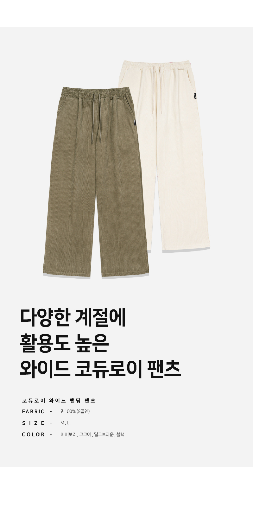코듀로이 와이드 밴딩 팬츠 (코코아)