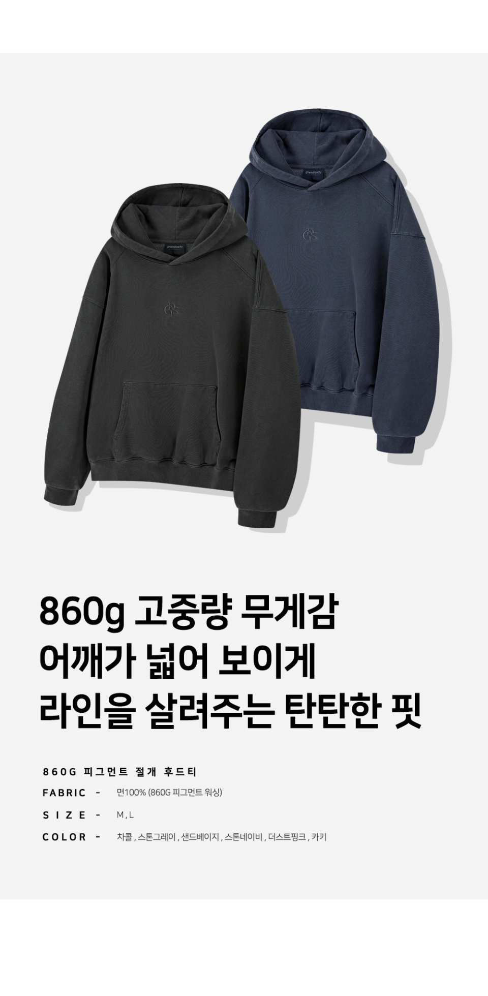 860g 피그먼트 절개 후드티 (스톤네이비)