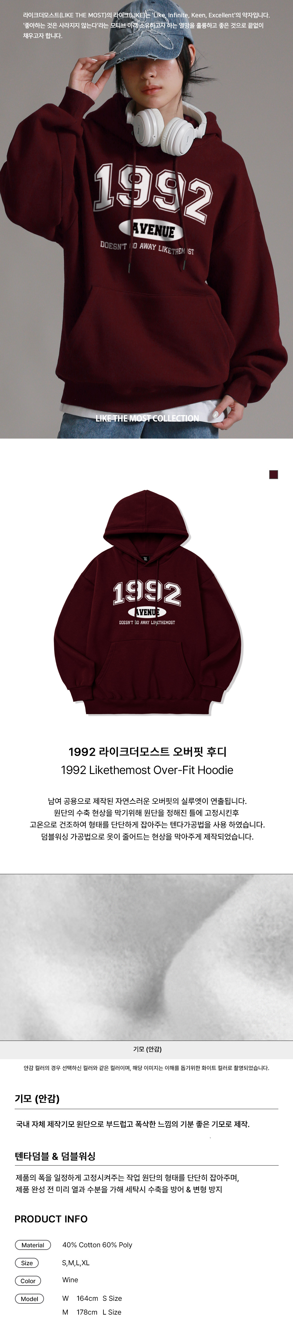 1992 라이크더모스트 오버핏 후드_와인