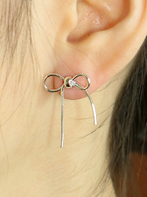 Line Dot Mini Hoop Silver Earring Ie51 [Silver]