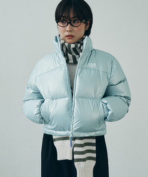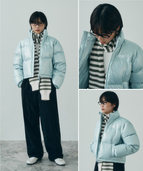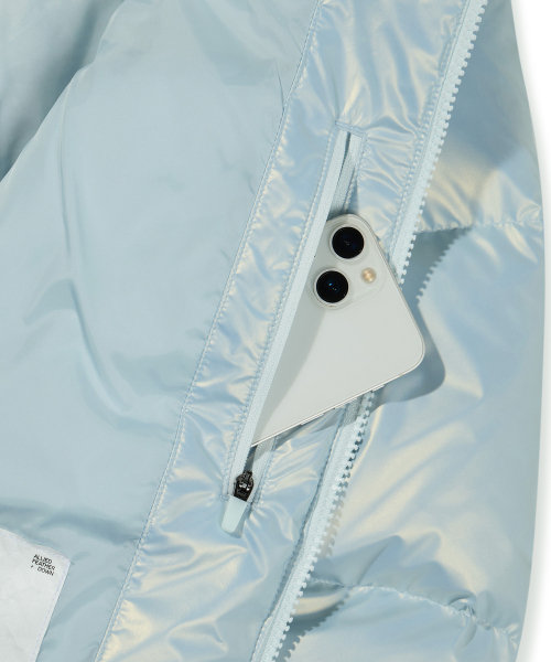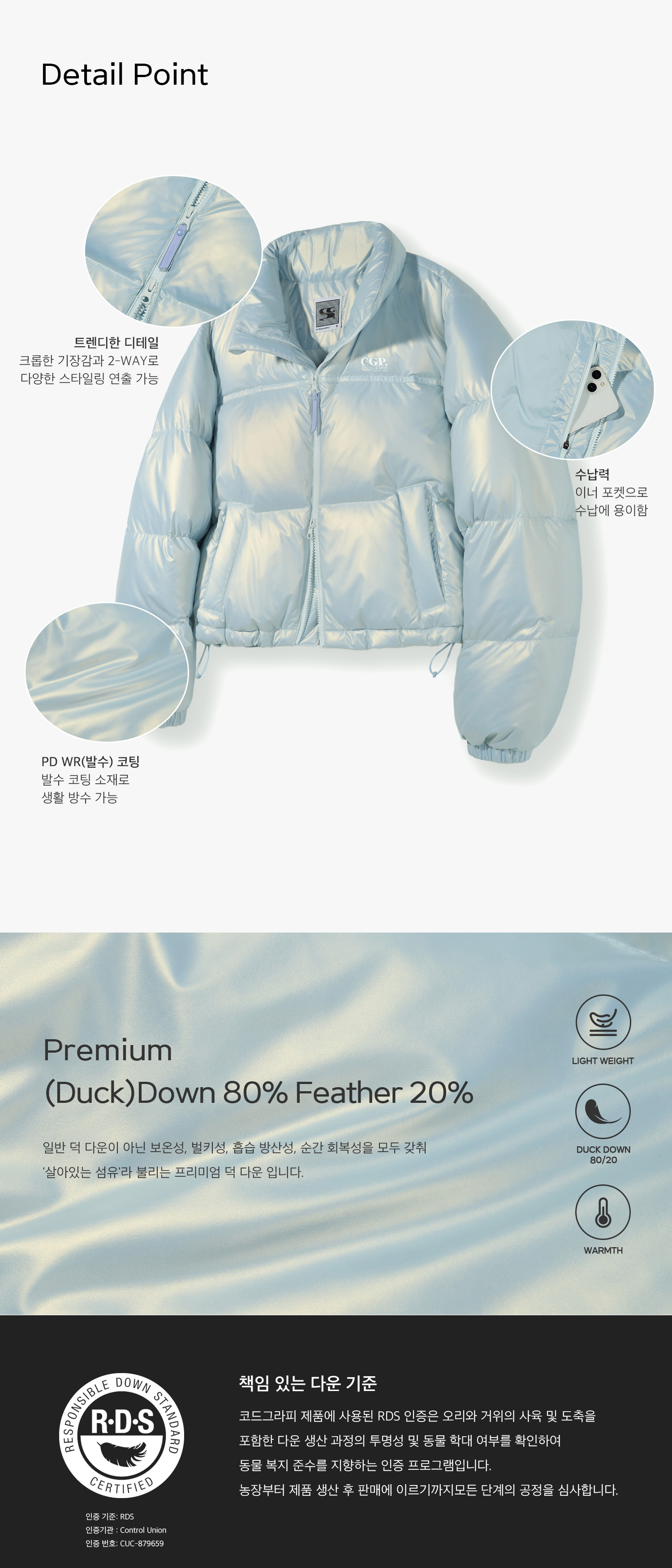[24년Ver.] (우먼) RDS 글로시 덕다운 푸파 숏패딩_스카이블루