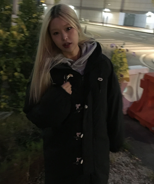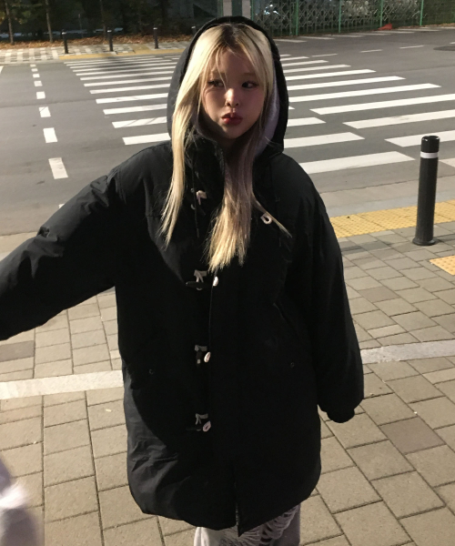 [패딩 Ver.] 피쉬테일 레이어드 후드 롱파카_블랙