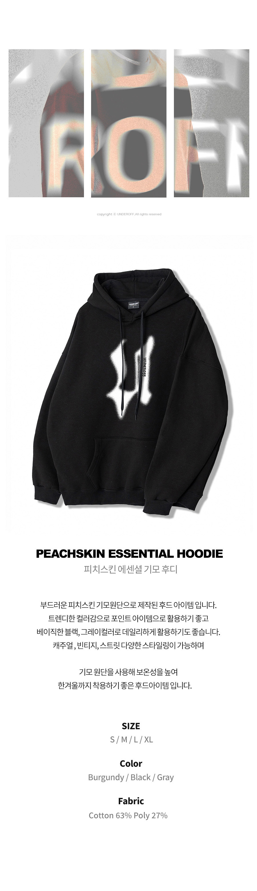 피치스킨 에센셜 빈티지고딕 기모 후디 3colors