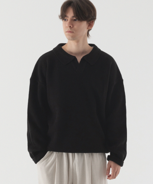 베르노 세미 오버핏 카라 니트 [블랙]