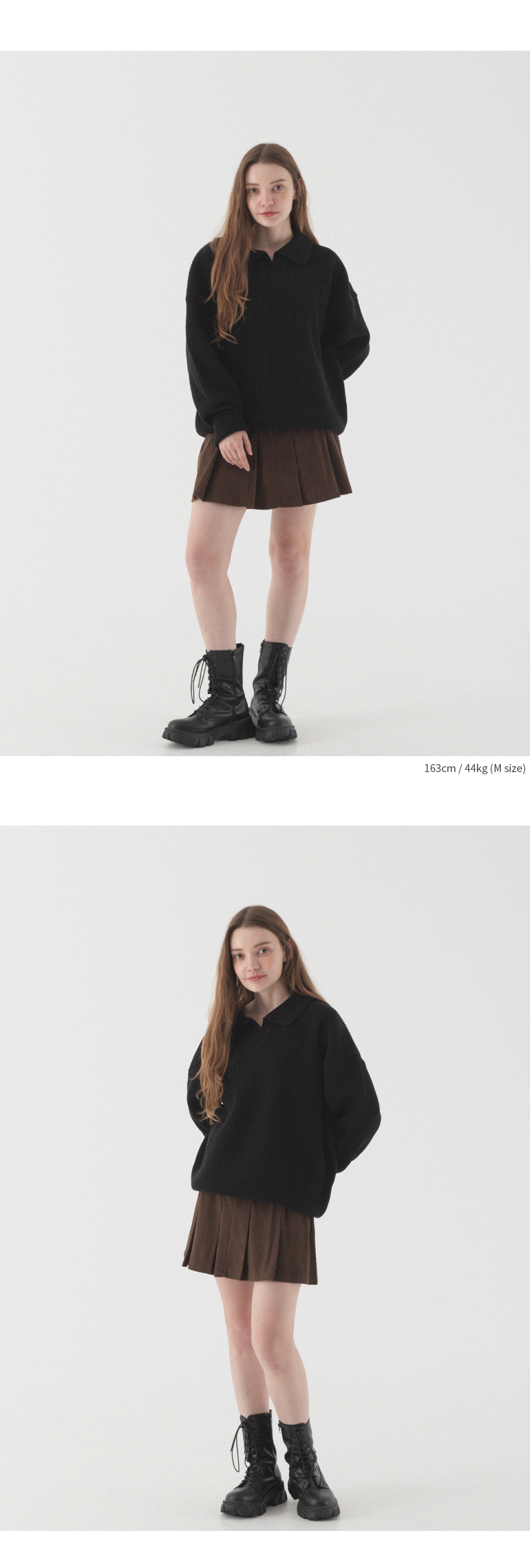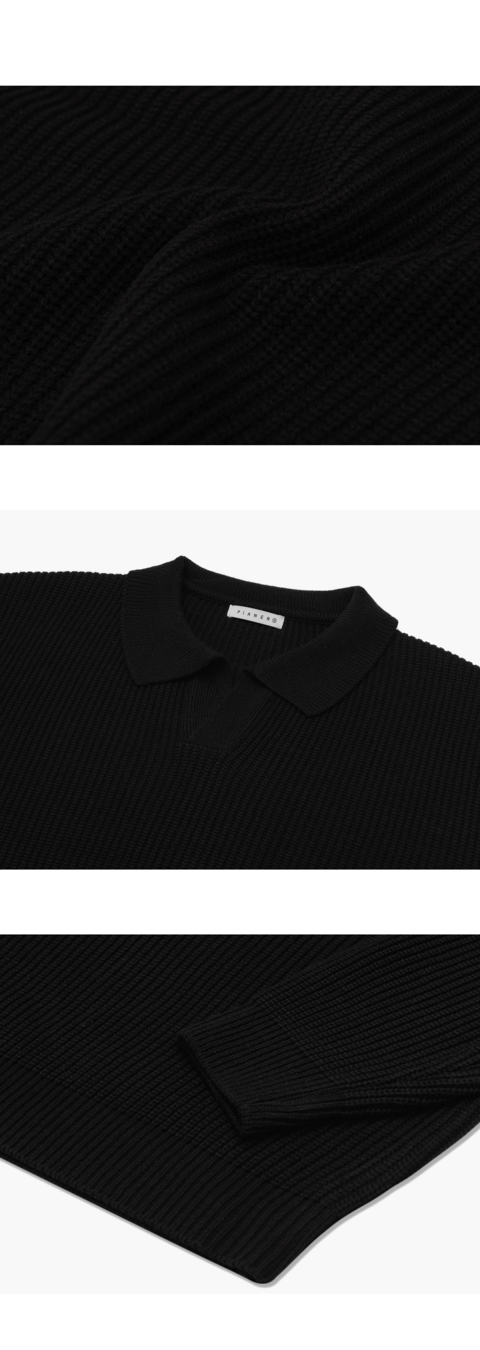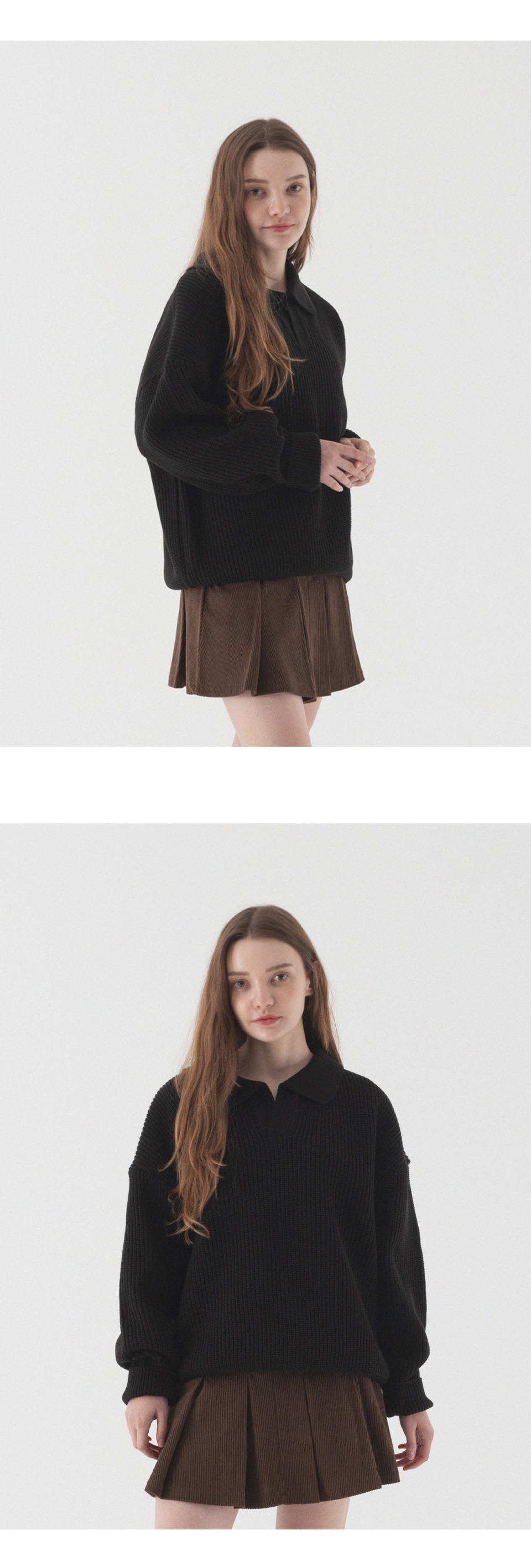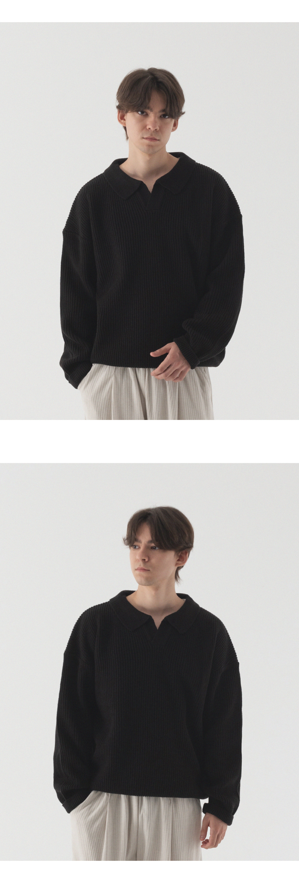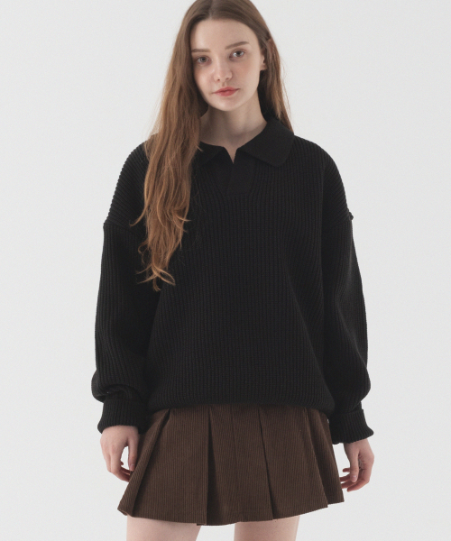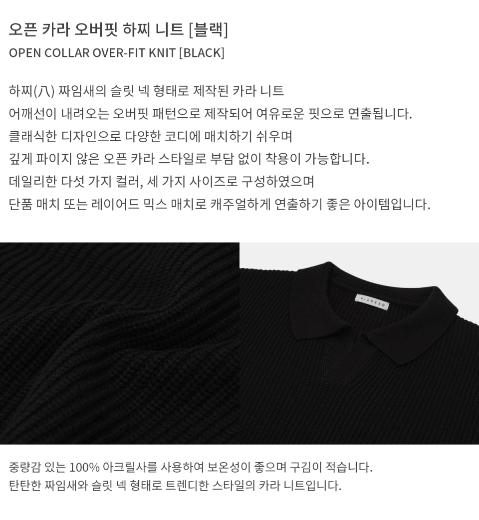 오픈 카라 오버핏 하찌 니트 (블랙)