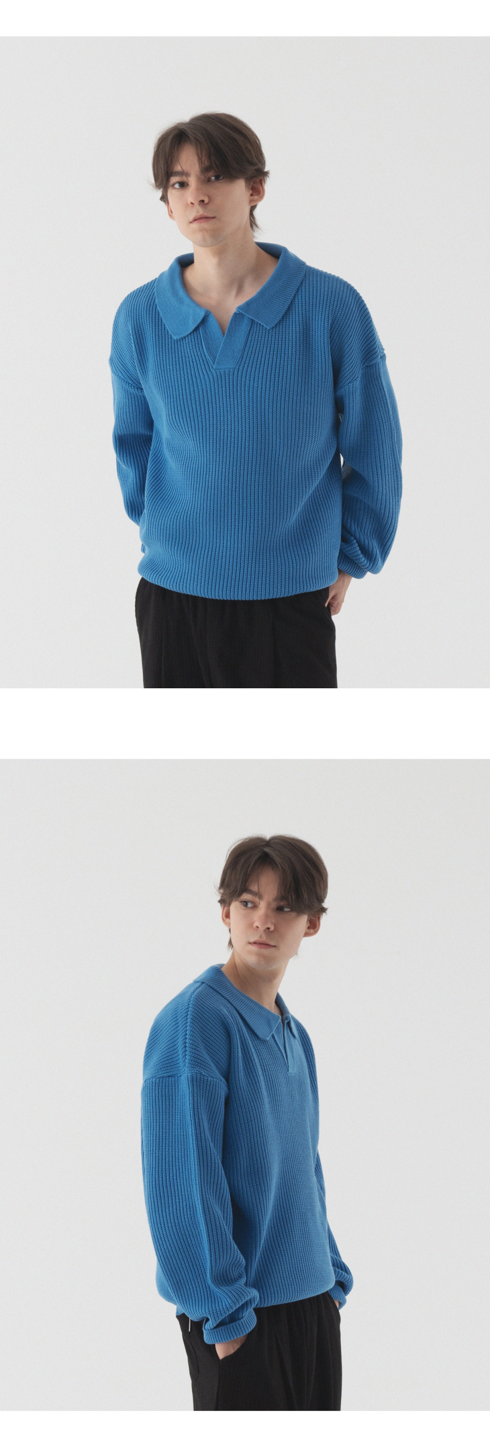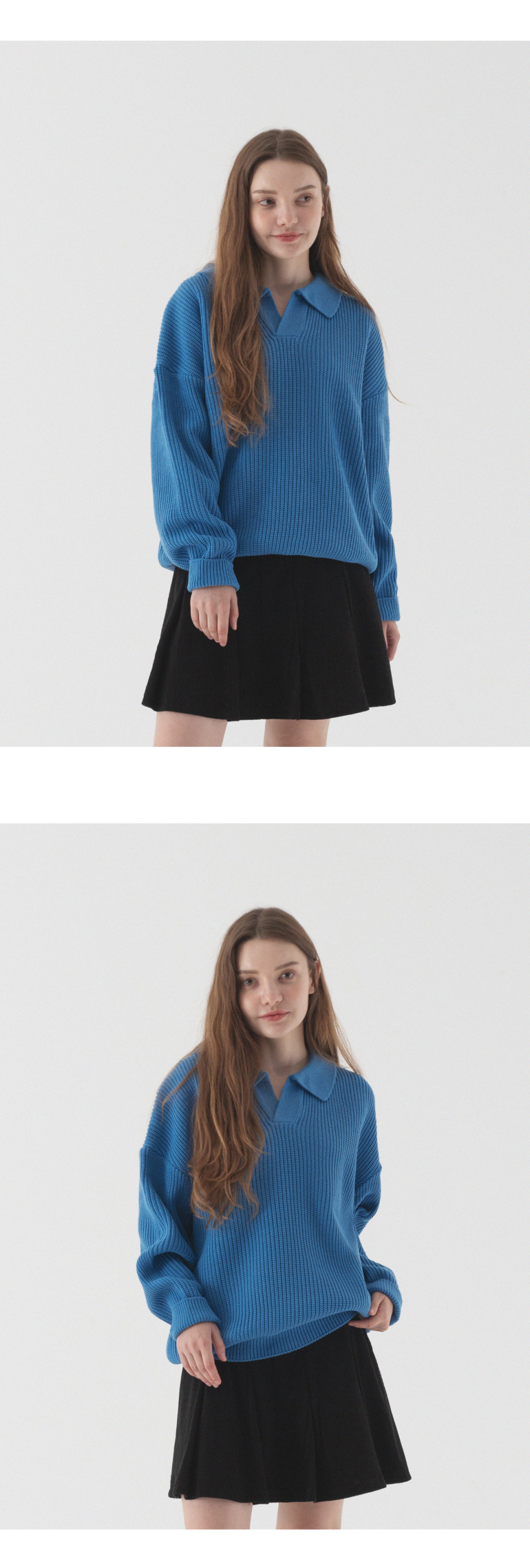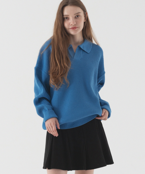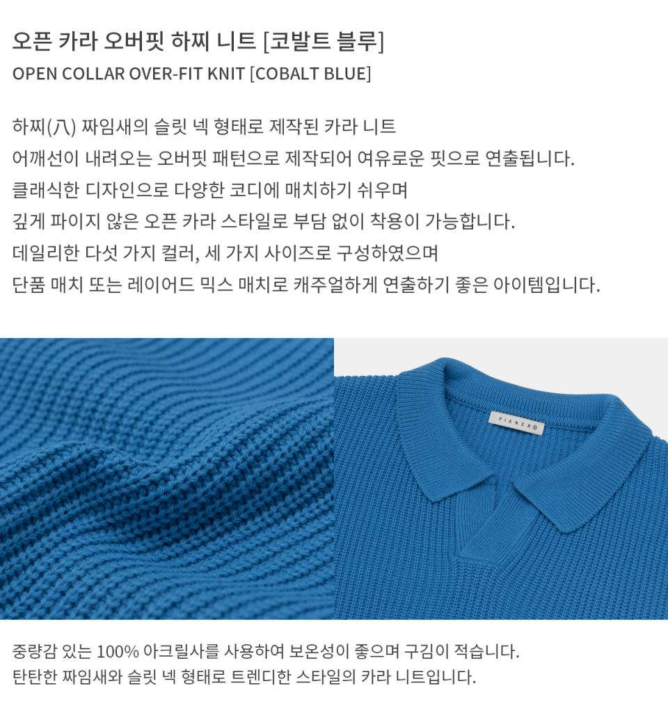 오픈 카라 오버핏 하찌 니트 (코발트 블루)