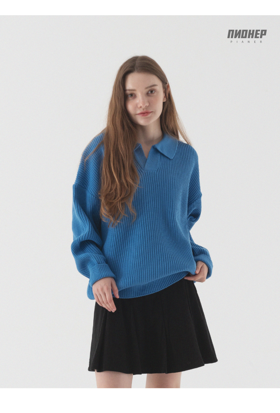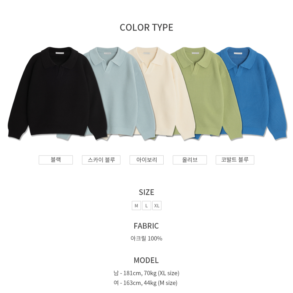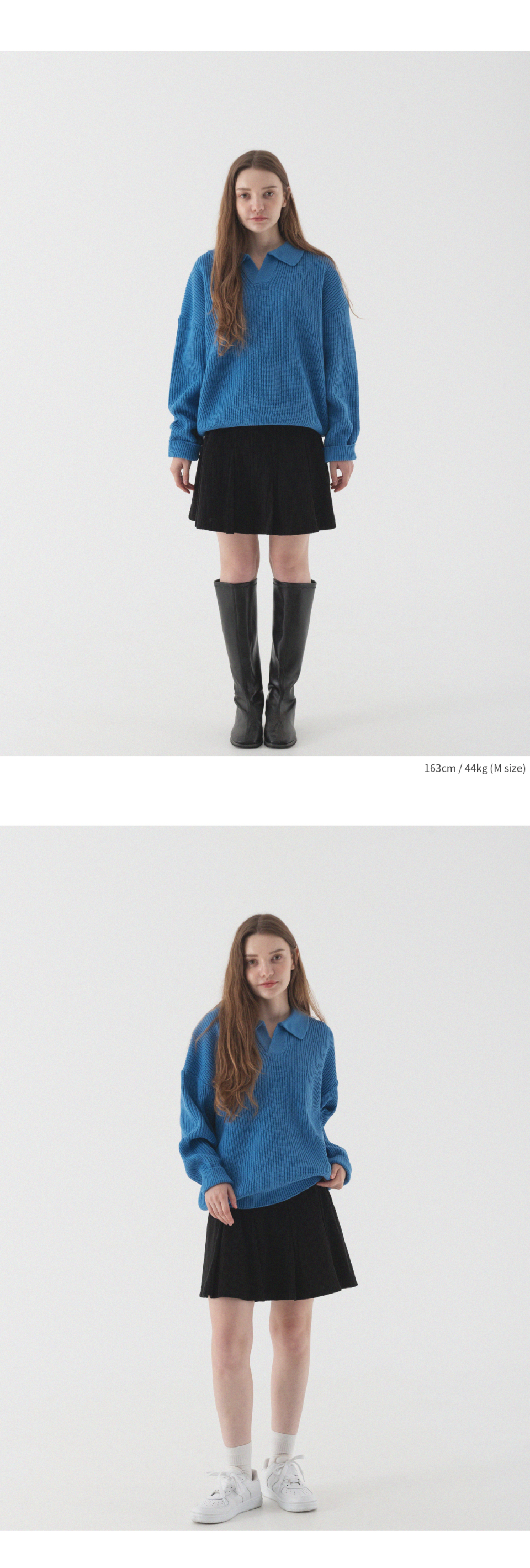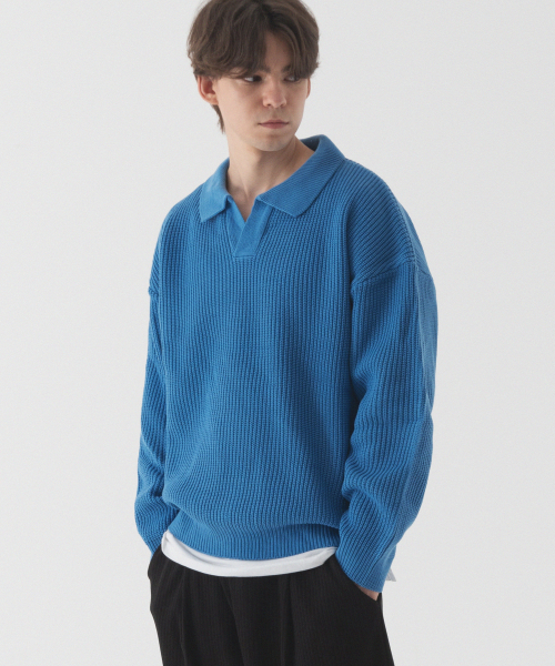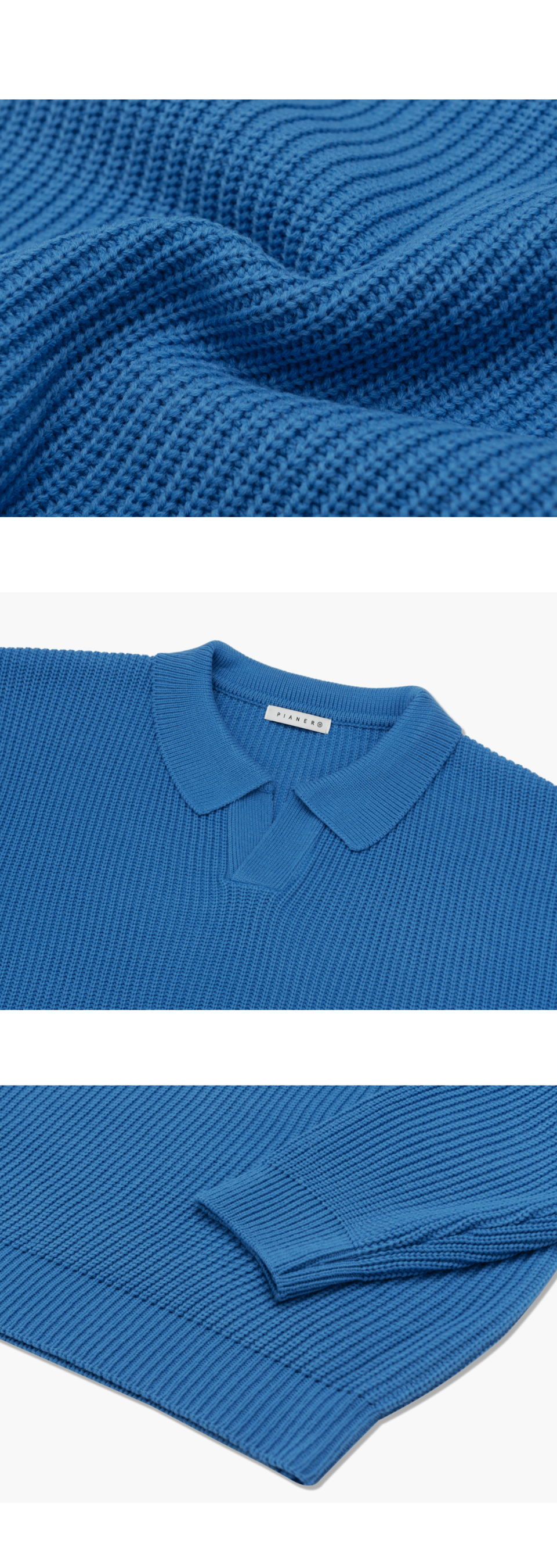 오픈 카라 오버핏 하찌 니트 (코발트 블루)